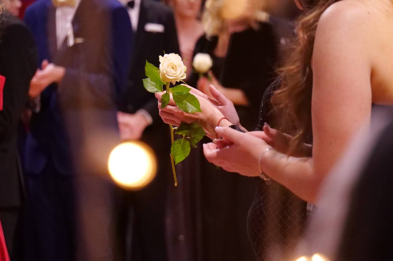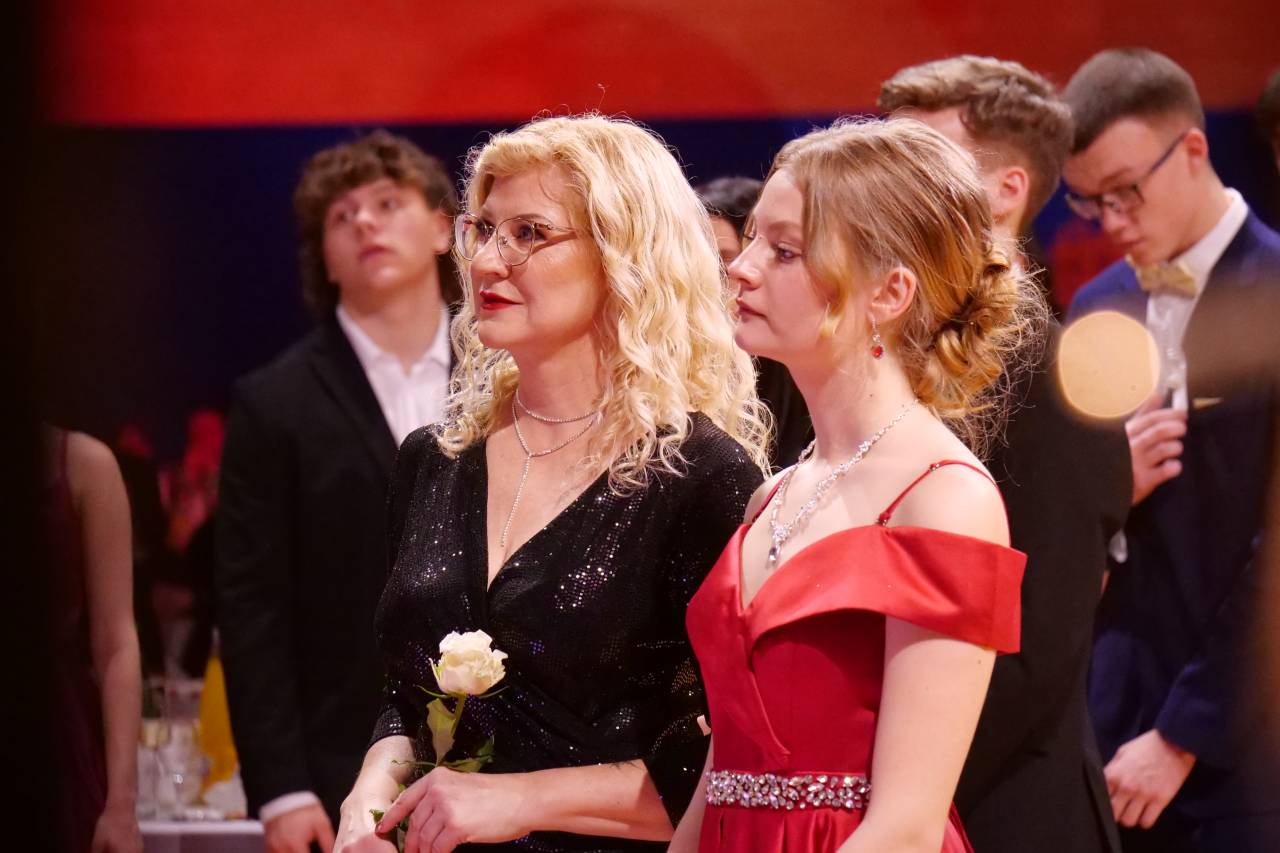 Dijakinje so blestele v prefinjenih večernih oblekah, ki so jih dopolnjevale čudovite pričeske in skrbno izbrani dodatki. Dijaki so se odločili za elegantne obleke, ki so izžarevale profesionalnost in samozavest.