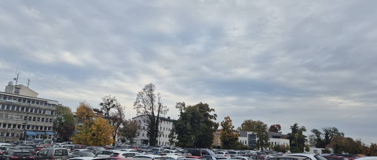 Danes je parkirišče polno do zadnjega kotička, saj je v središču mesta Trezino senje, tradicionalni jesenski sejem, ki vsako leto privabi množico obiskovalcev.