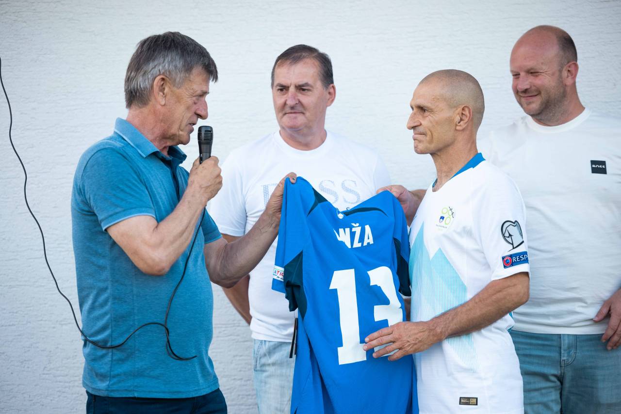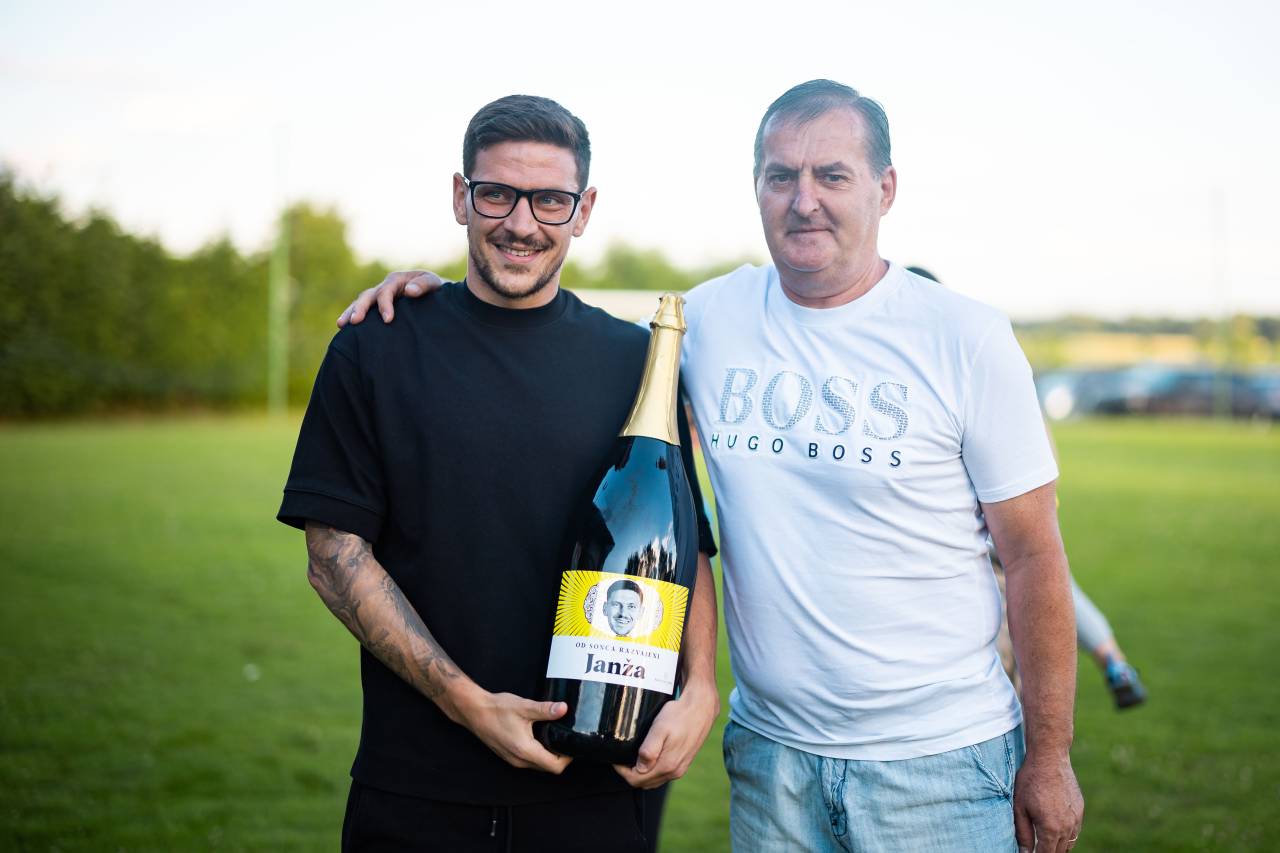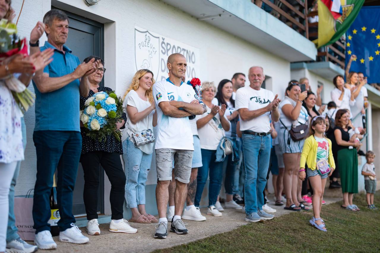 Sprejem so mu pripravili na nogometnem igrišču v Puževcih, kjer je Janža naredil svoje prve nogometne korake.