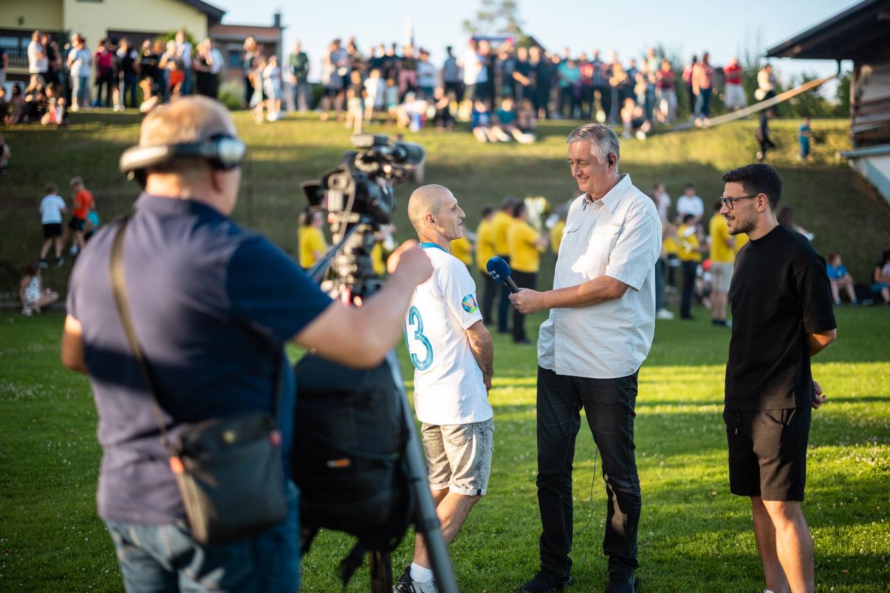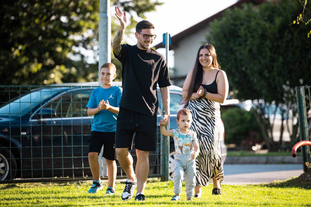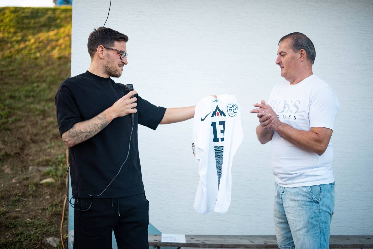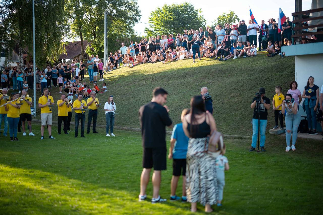Sprejem so mu pripravili na nogometnem igrišču v Puževcih, kjer je Janža naredil svoje prve nogometne korake.