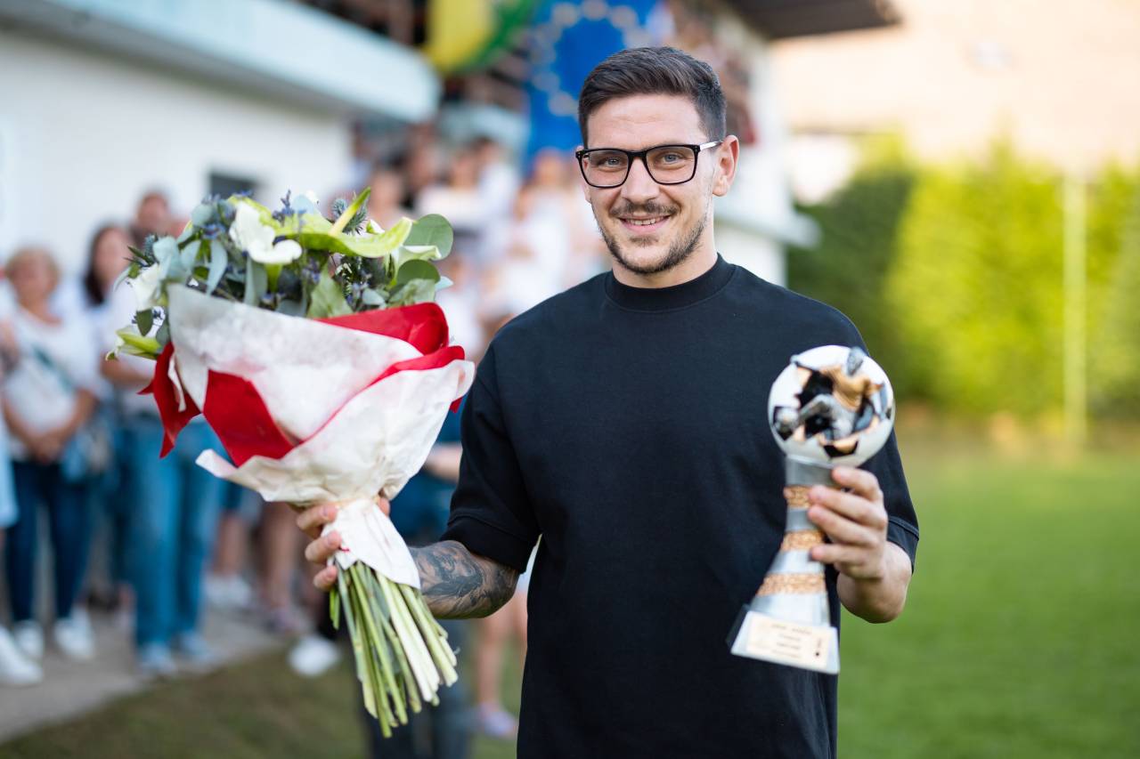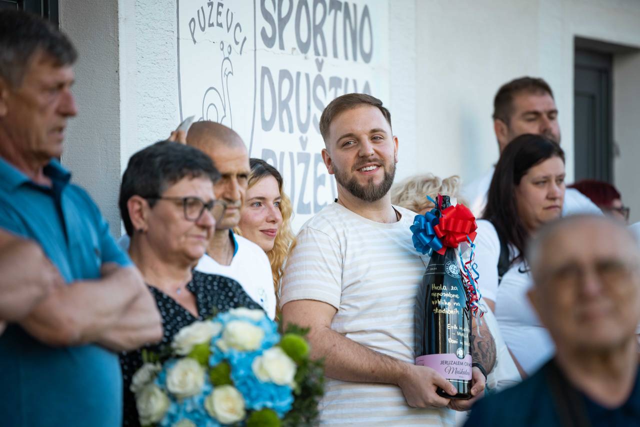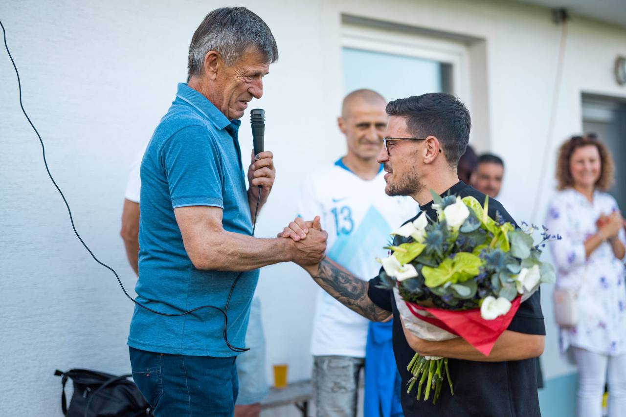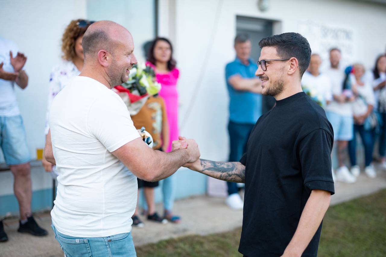 Na nogometnem igrišču v Puževcih so pripravili sprejem Eriku Janži.