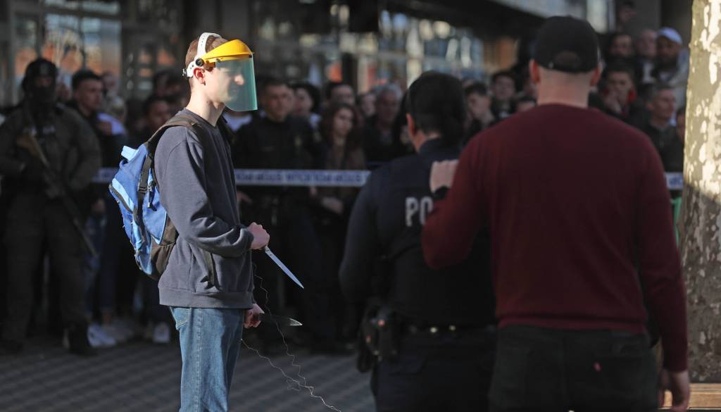 Na Bavarskem dvoru v Ljubljani so policisti zaznali mlajšega moškega z masko, ki je imel pri sebi dva noža in v postopku ni sodeloval.
