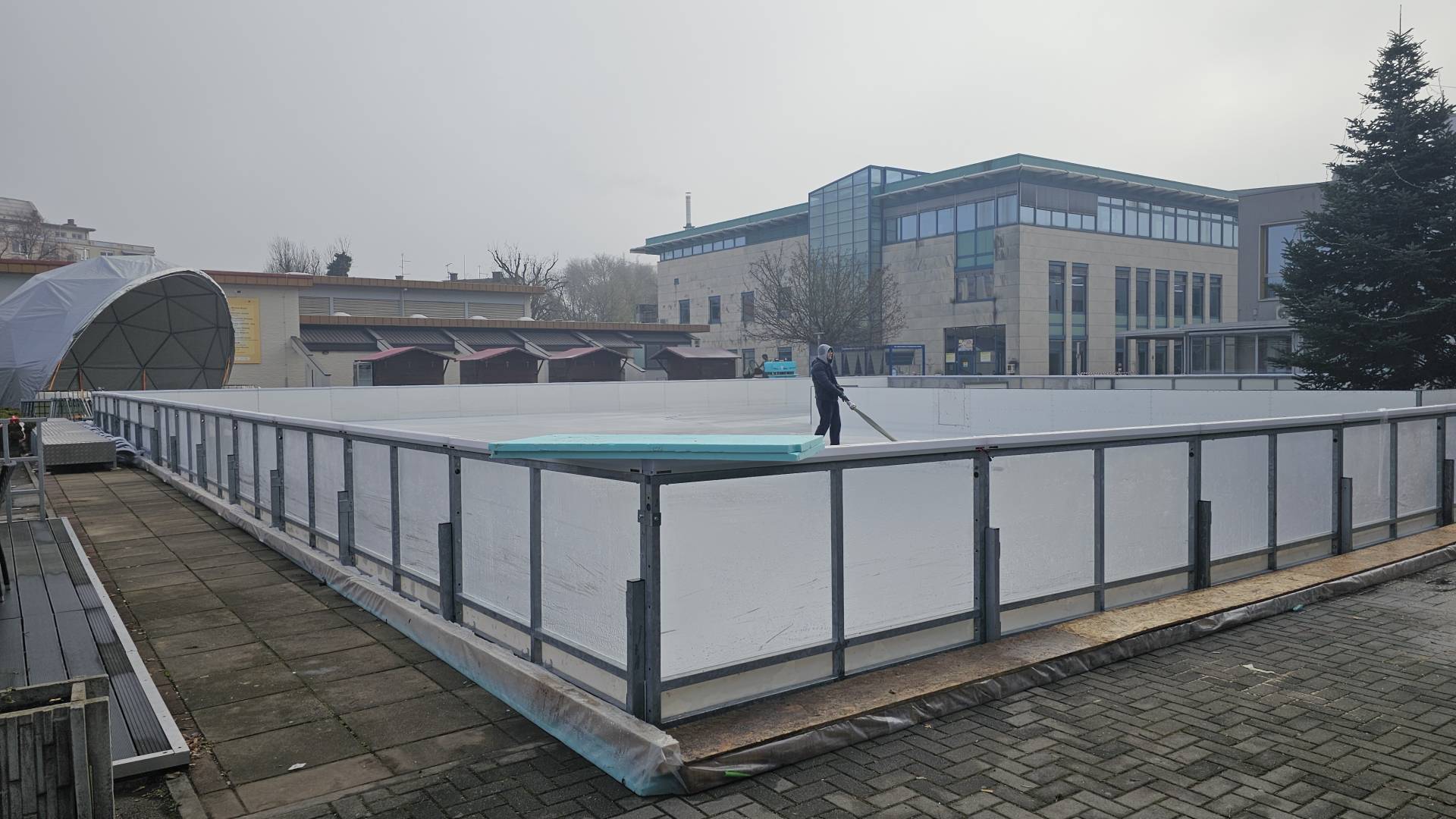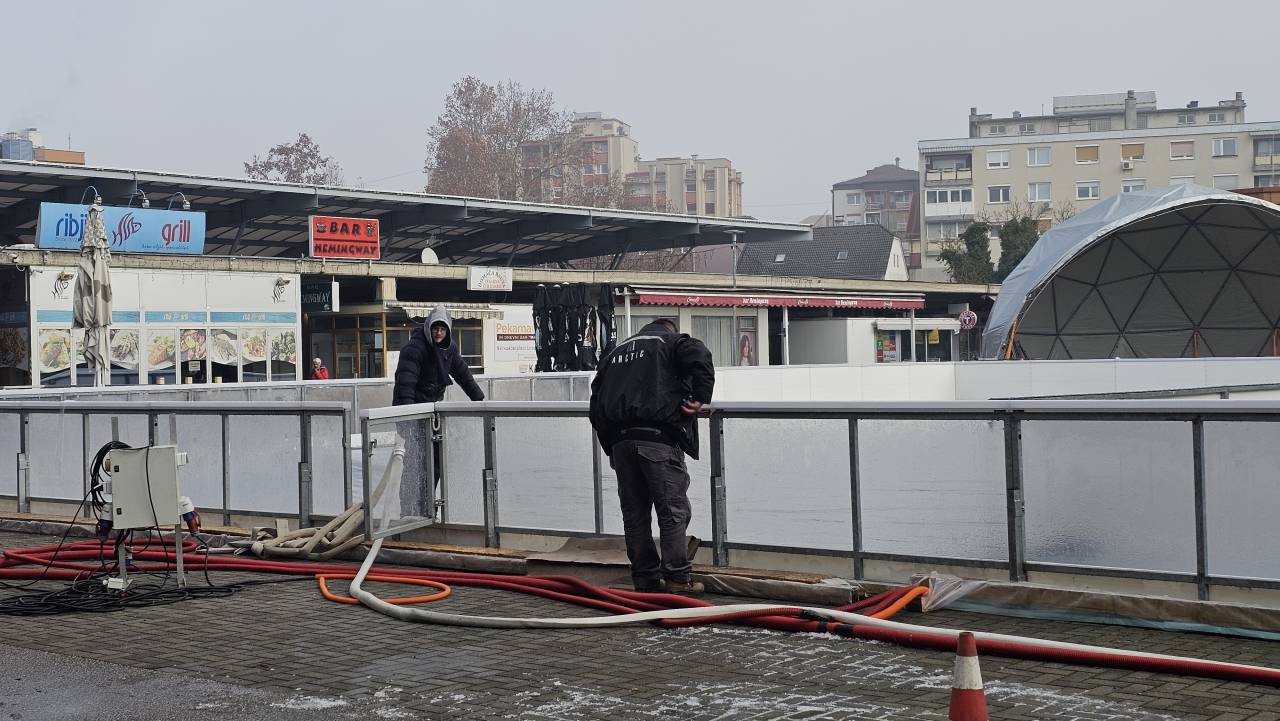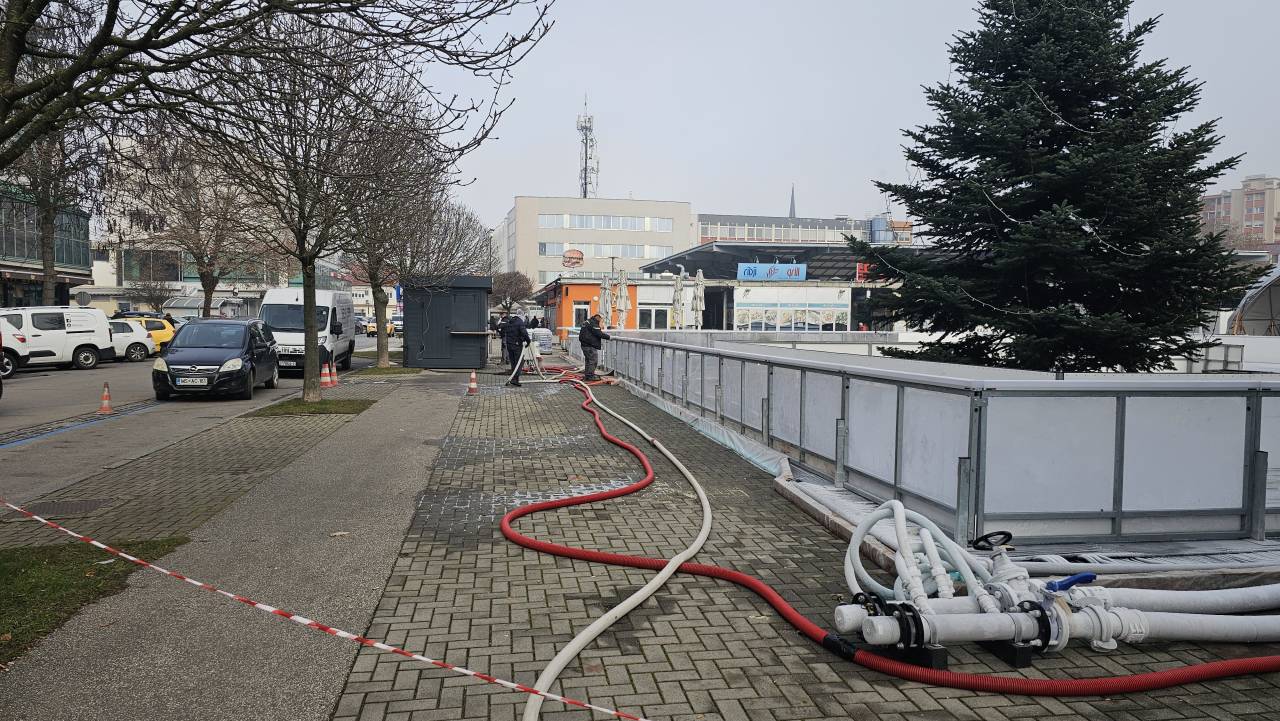 FOTO in VIDEO: V Murski Soboti začeli postavljati mestno drsališče na Trgu kulture