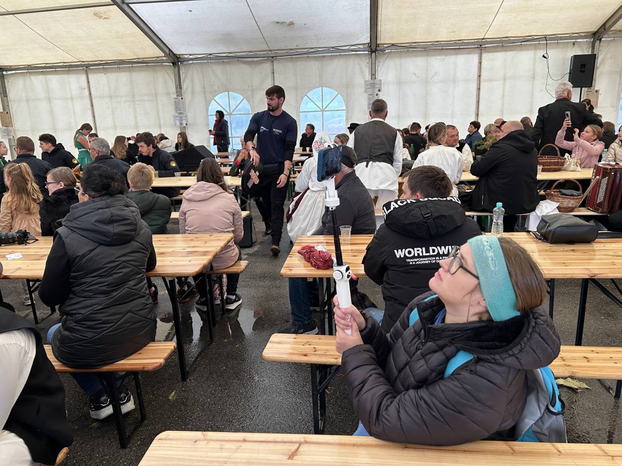 Ob 10.30 bi se morala začeti tudi povorka folklornih skupin z Godbo Odranci in mažoretkami, a so to zaradi slabega vremena odpovedali. Nastop godbe in folklornih skupin je bil pod šotorom na Planikinem parkirišču.
