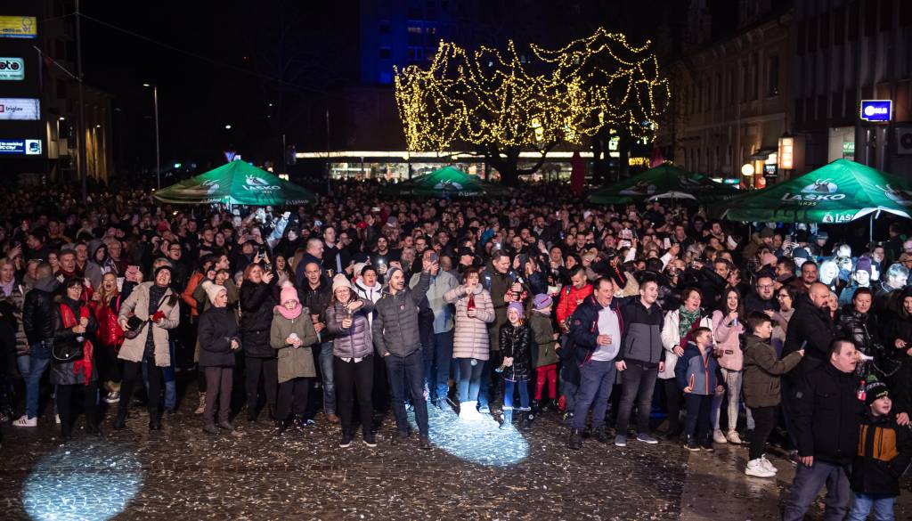 Vrhunec večera je bil seveda silvestrski ognjemet, ki je osvetlil nočno nebo nad Trgom zmage.
