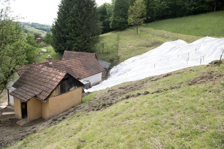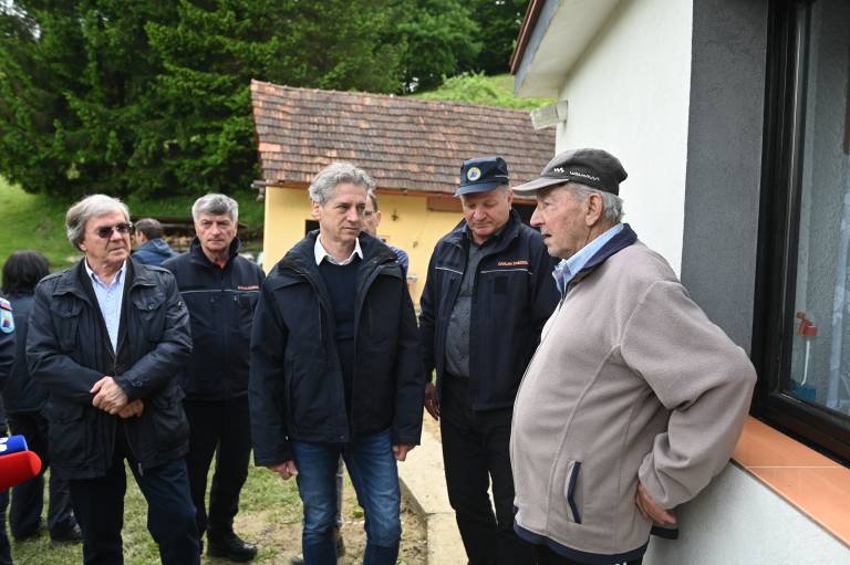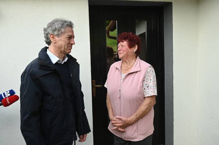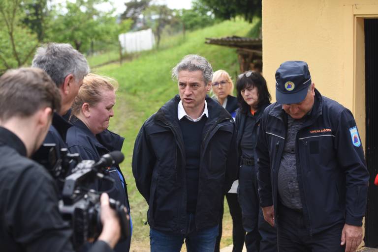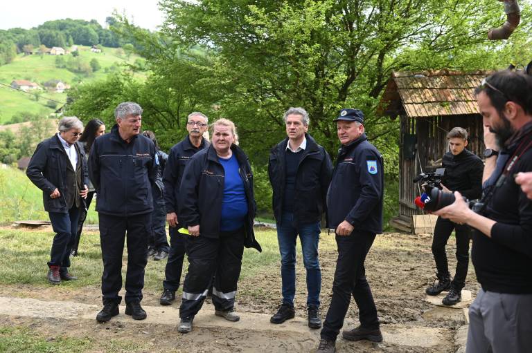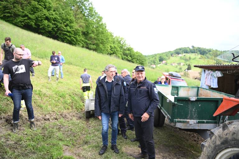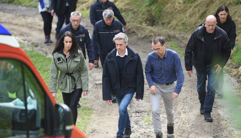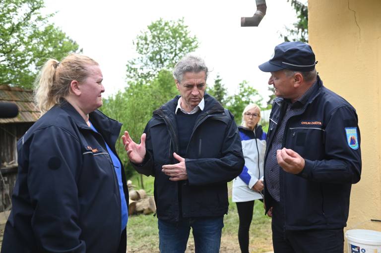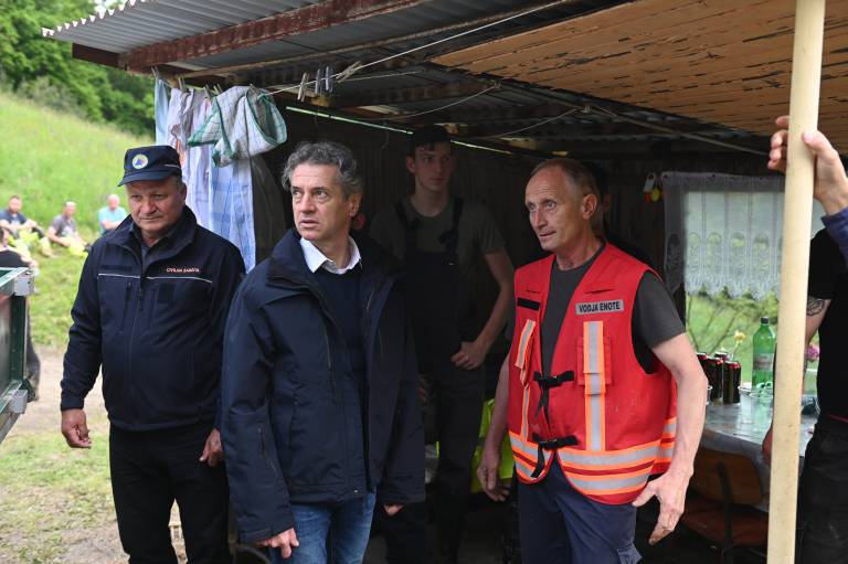 Obiskal je tudi domačine, ki so jim nedavne padavine uničile dom, med njimi zakonca Pitner, ki jima je plaz iz torka na sredo zasul hišo.
