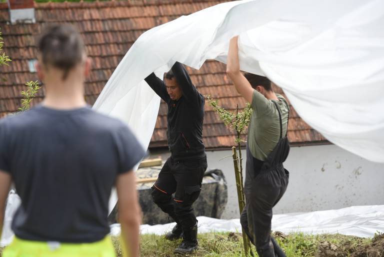 Plazovita območja ob stanovanjskih hišah v Selnici ob Muri v občini Šentilj je danes obiskal predsednik vlade Robert Golob. Zahvalil se je ekipam na terenu in občinam obljubil državno pomoč.