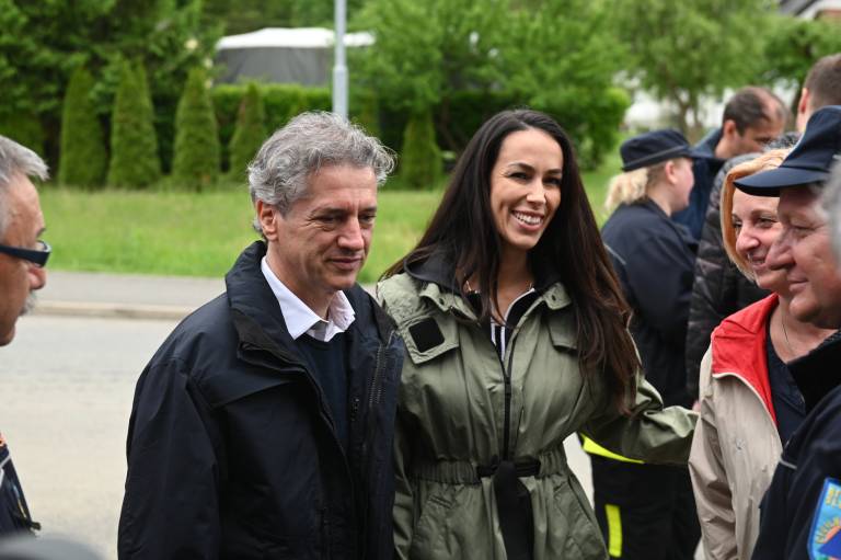 Predsednik vlade Robert Golob je danes v spremstvu partnerke Tine Gaber in Srečka Šestana, poveljnika Civilne zaščite Republike Slovenije, obiskal območja ob stanovanjskih hišah v Občini Šentilj, ki jih je prizadelo močno deževje.