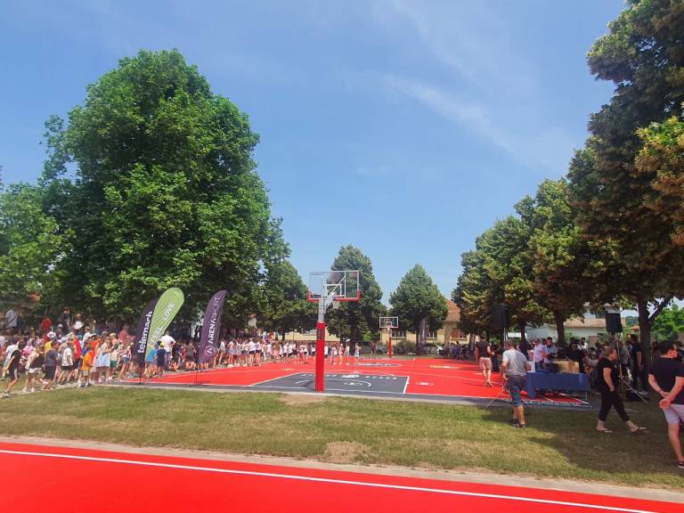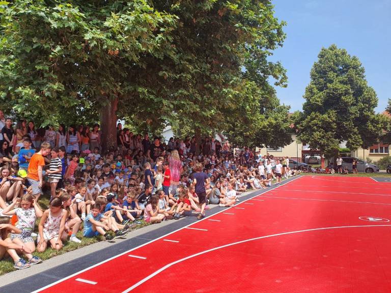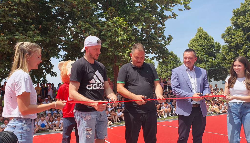 Pri Osnovni šoli I Murska Sobota so danes slavnostno otvorili prenovljeno igrišče Gorana Dragića.
