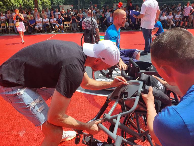 Goran Dragić zelo vesel, da lahko otrokom omogoči prenovljeno igrišče