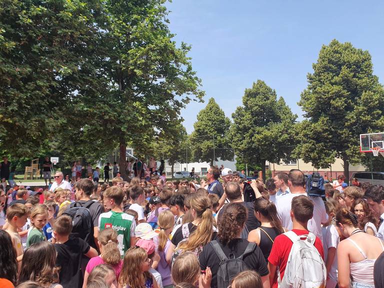 Dragić z učenci metal na koš, vzel si je tudi čas za avtograme