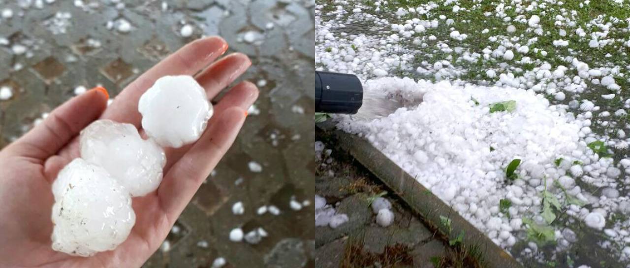 Na Agenciji Republike Slovenije za okolje so že dopoldne opozarjali na večjo verjetnost pojava toče, ki je v Pomurju danes še posebej visoka.