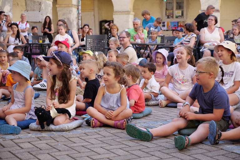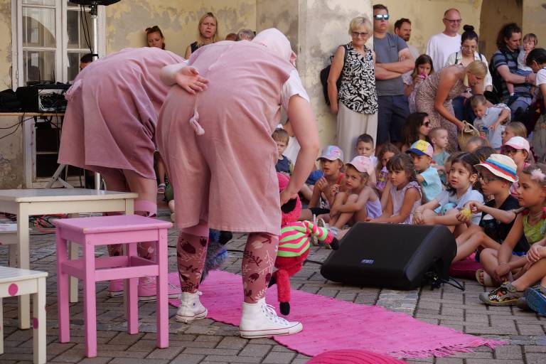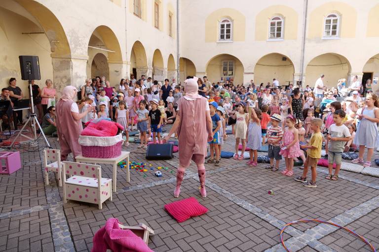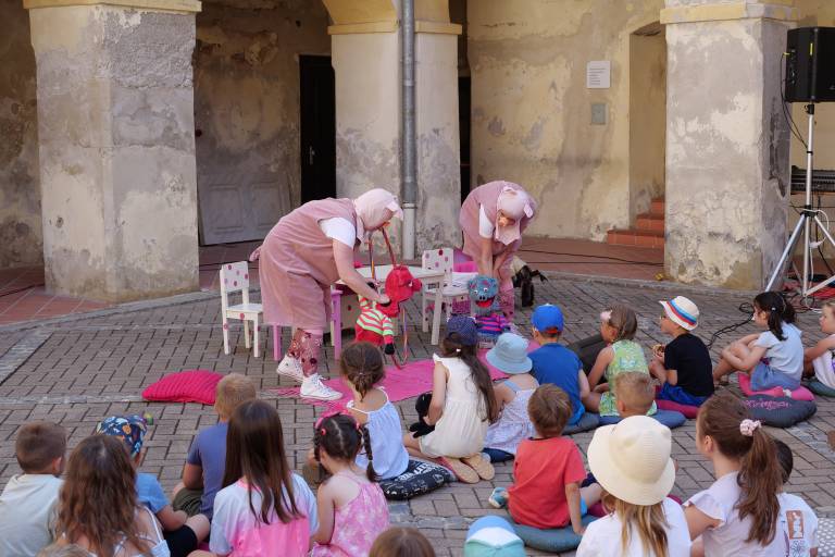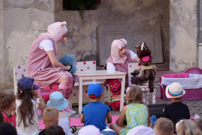 V okviru Soboškega poletja 2025 se je danes na grajskem dvorišču v Murski Soboti odvila interaktivna igrano-lutkovna predstava »Trije prašički«.