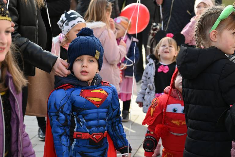 V Mestnem parku Murska Sobota je bilo danes pravo pustno rajanje za najmlajše, ki so se zbrali na grajski ploščadi, kjer so se udeležili pravega Otroškega pustovanja.