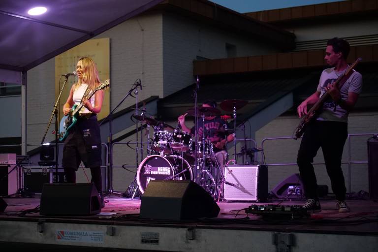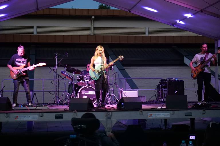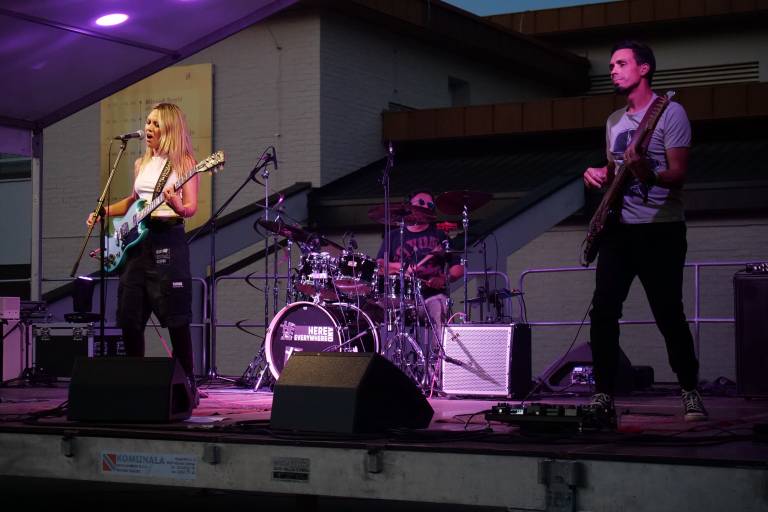 Trg kulture v Murski Soboti je napolnila energija slovenske rokovske skupine King Foo, ki sedaj ustvarjali pod imenom Here and Everywhere.