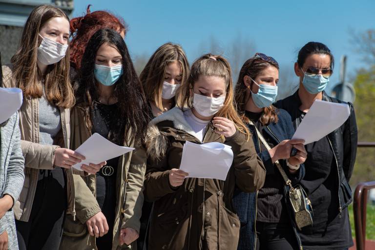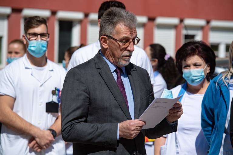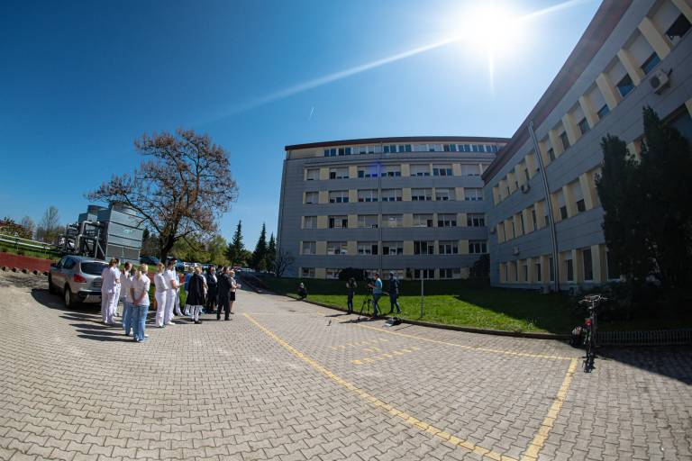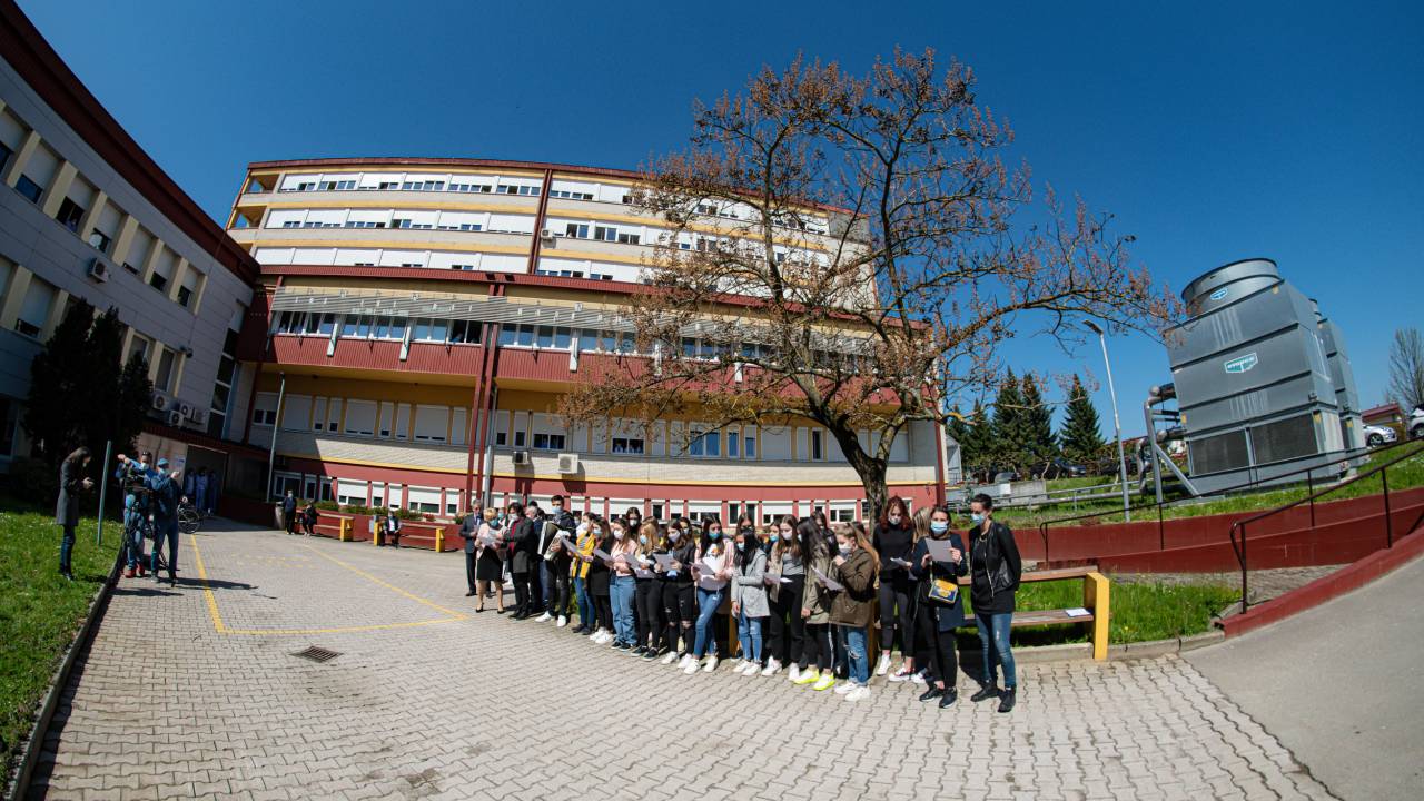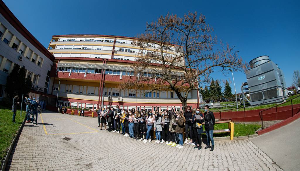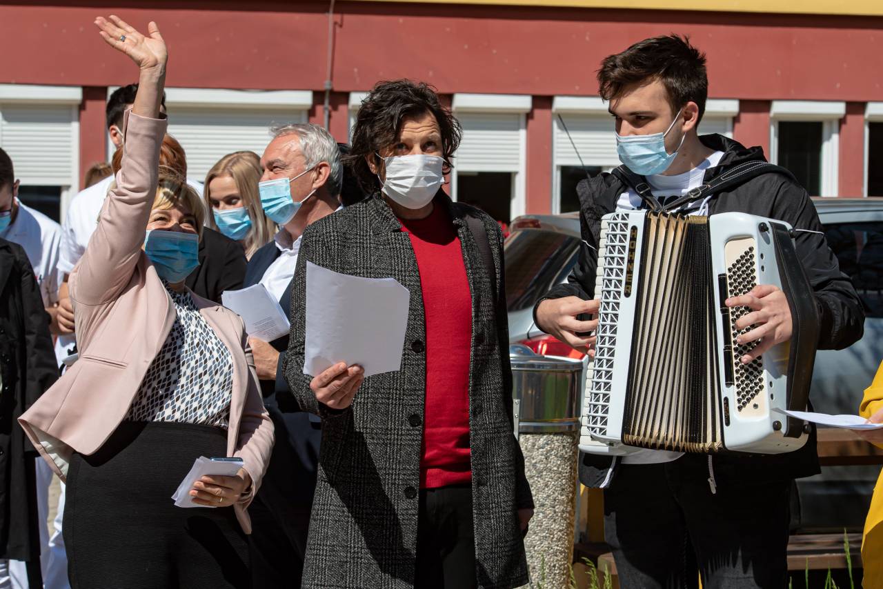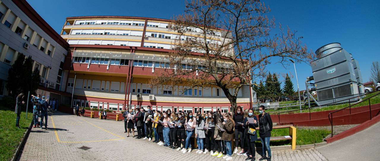 V Splošni bolnišnici Murska Sobota so podprli akcijo Vseslovensko petje s srci in danes ob 11.00 zapeli na ploščadi med kirurškim in internim oddelkom ter pred infekcijskim oddelkom skupaj z dijaki Srednje zdravstvene šole Rakičan pod vodstvom Edvarda Jakšiča.