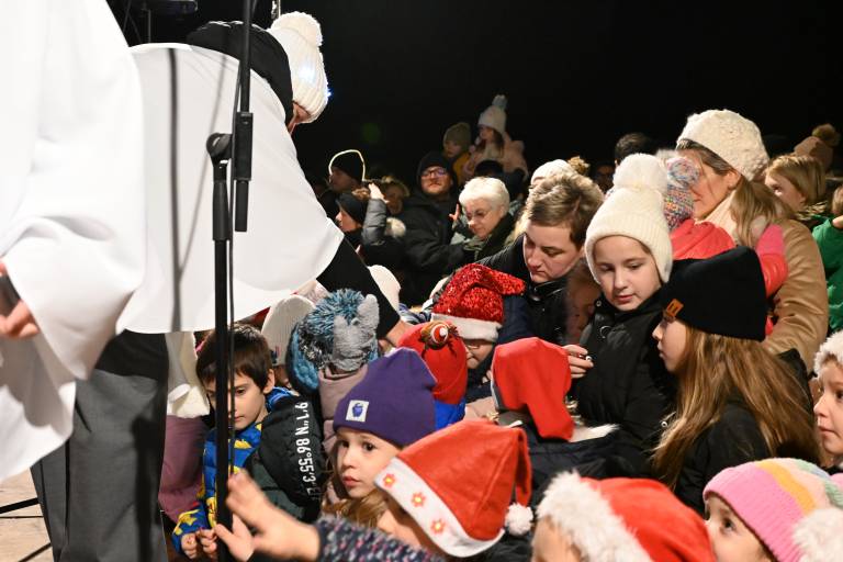 Na grajski ploščadi se je danes ustavil dedek Mraz in pozdravil najmlajše. Zapeli so mu otroci Vrtca Murska Sobota, ki so se tudi letos podali na tradicionalni pohod z lučkami.