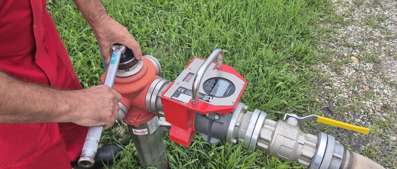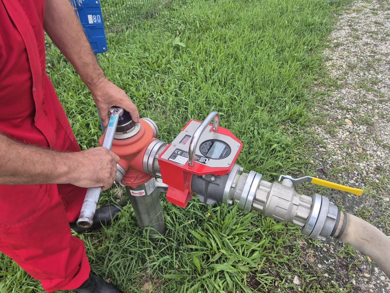 Ob pregledu na hidrant najprej namesti pripravo za meritev in doda dušilec tlaka. Za tem odpre hidrant in preveri, koliko je statičnega pritiska v sistemu hidrantnega omrežja in kakšen je pretok vode.