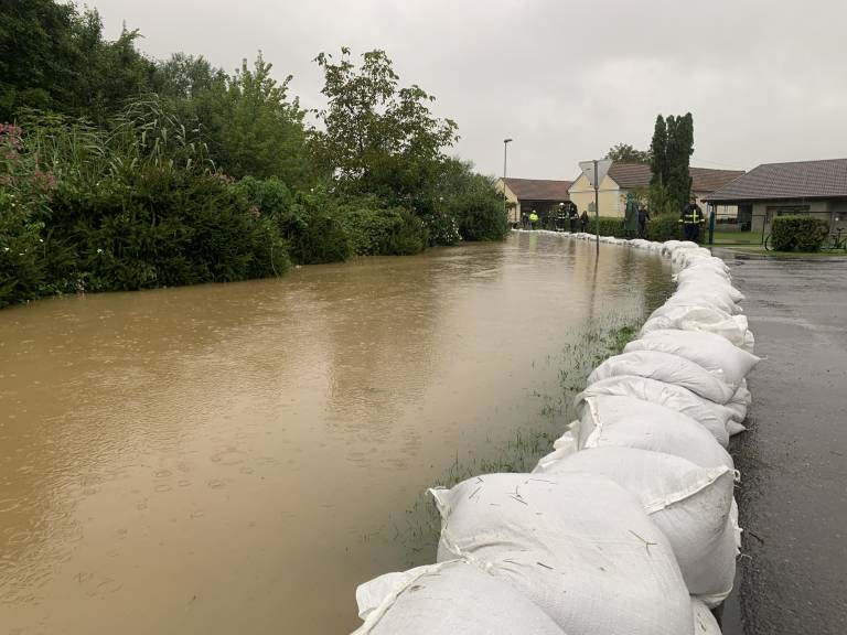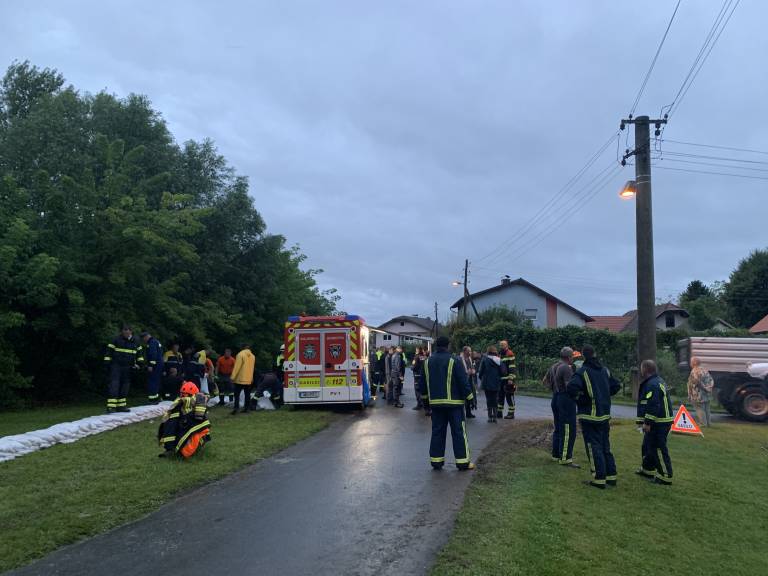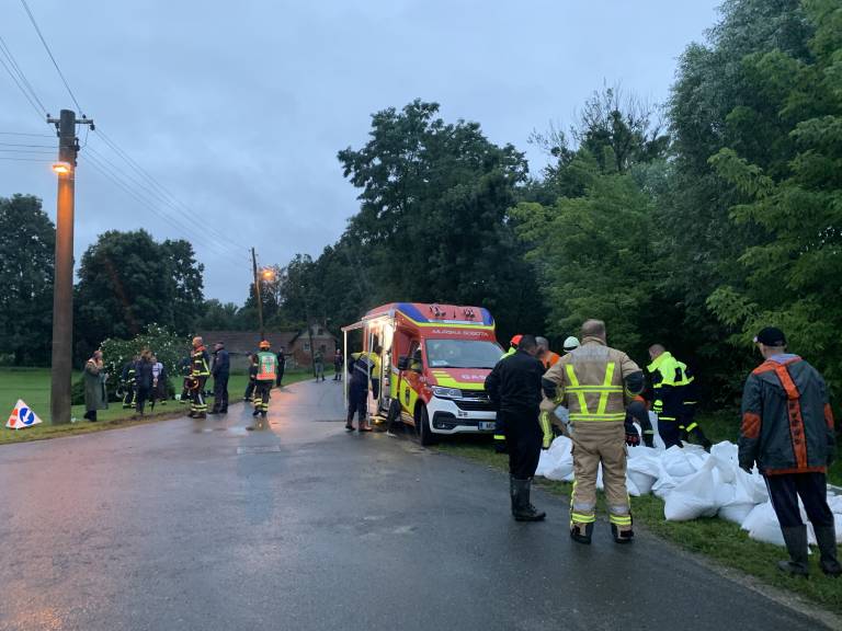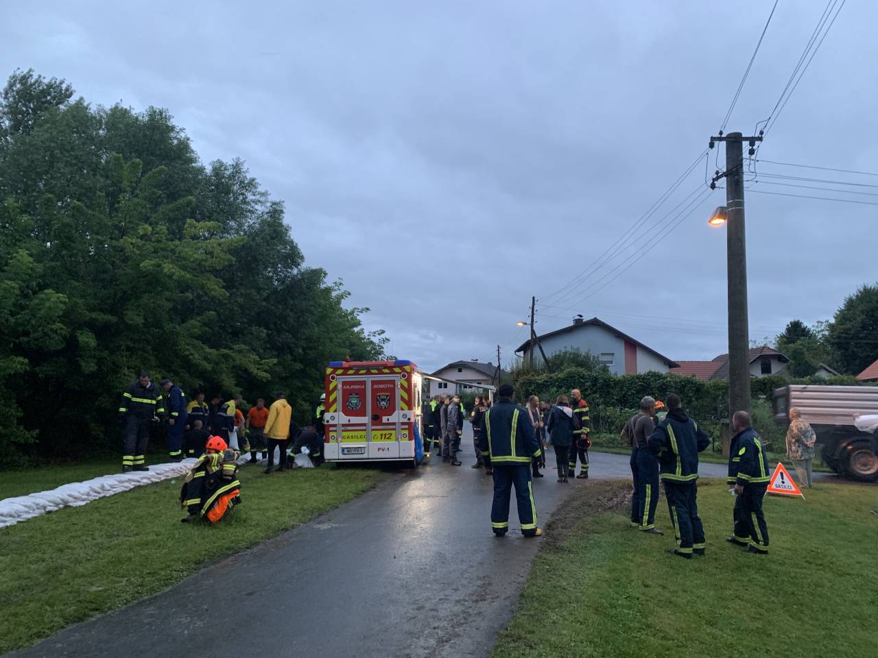 Pri gasilskih domovih so polnili protipoplavne vreče in jih s tovornjaki in traktorji vozili do predrtega nasipa. Zaradi nevarnosti visoke vode so vklopili tudi sireno za splošno nevarnost.