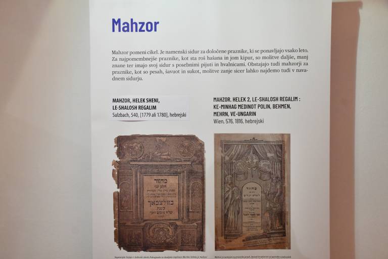 Predstavljeni so bili molitveniki, ki so jih nekoč uporabljali prekmurski Judje za praznike, kot so sukot, šavout, jom kipur, roš hašana in pesaḥ.