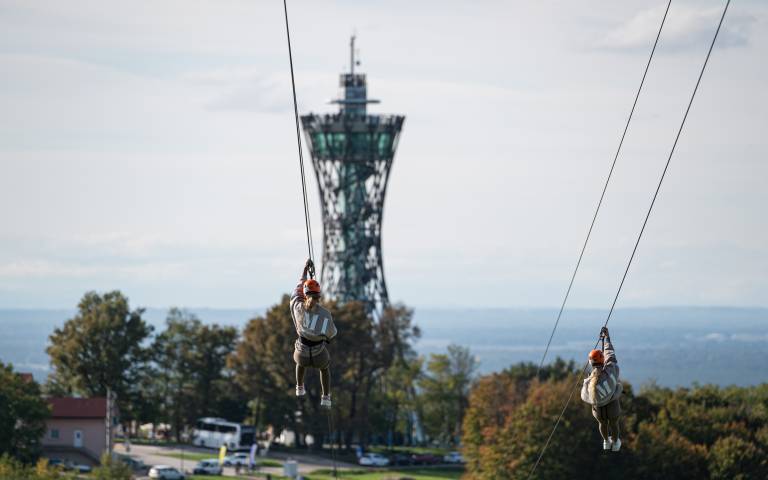Po obisku Stolpa so se podali do adrenalinske atrakcije Zipline Vinarium.