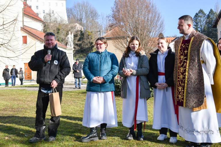 Blagoslovili so jih pred cerkvijo svete Katarine Aleksandrije Aleksandrije.