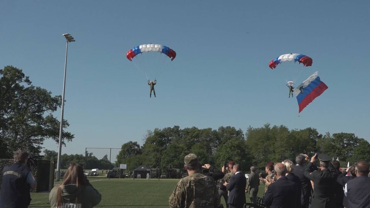 Dogodek so s skokom in doskokom padalca z državno zastavo iz letala, popestrili padalci.