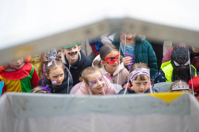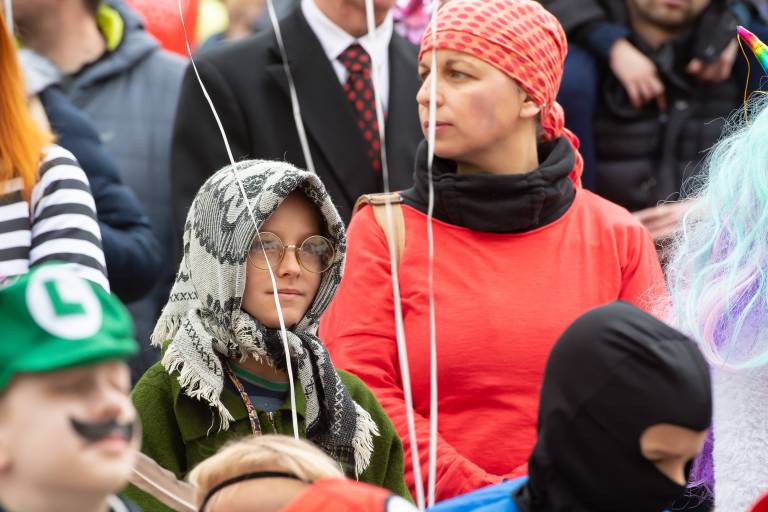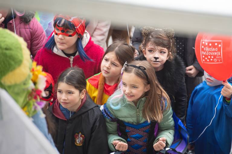 Veliko otroško pustovanje na grajski ploščadi privabilo številne pustne maske.