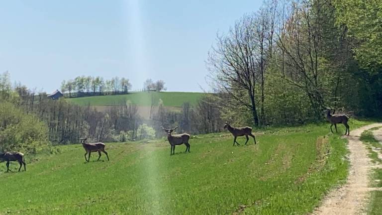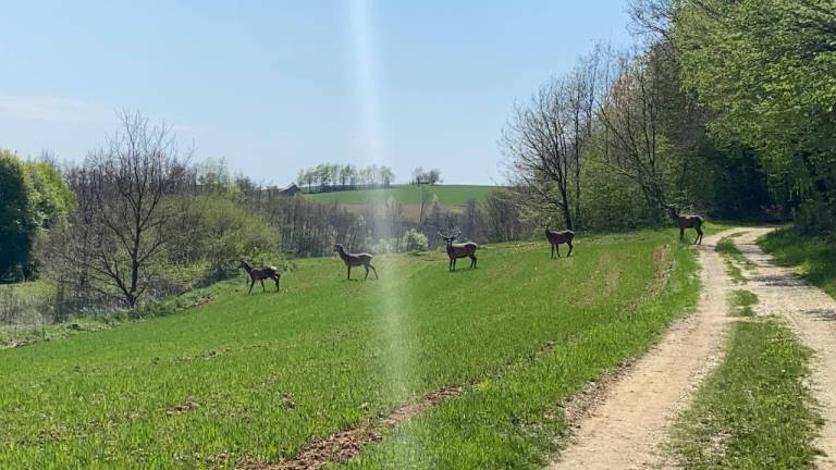 Bralec nam je posredoval fotografije in videoposnetek, na katerem smo priča prizoru, ki ga ne vidimo ravno vsak dan. Med sprehodom v naravi je njegovo pot prekrižala čreda košut in jelenov. Prav dosti ni manjkalo, da bi divjad, ki je pribežala iz gozda, trčila naravnost vanj.