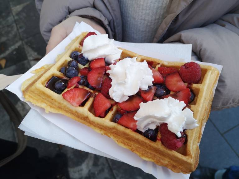Na voljo so seveda tudi kuhane klobase, langaš, sladkarije ter ostala ponudba. Kot se za praznični december spodobi pa ponujajo tudi odlično kuhano vino in čaj, da se malo segrejemo.