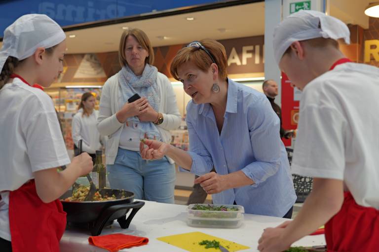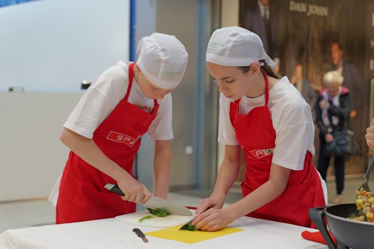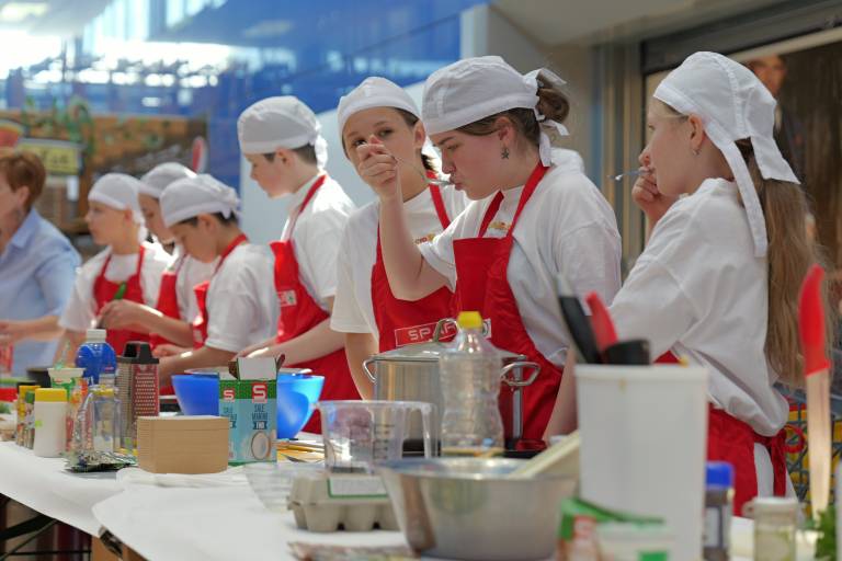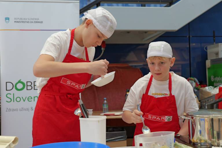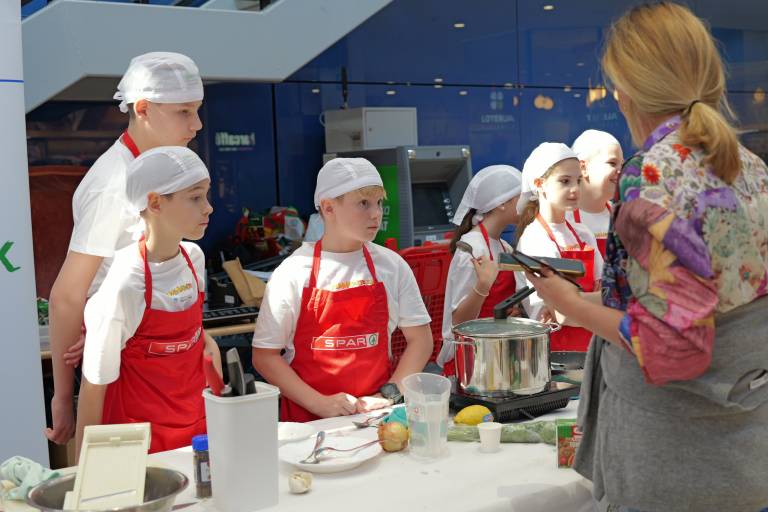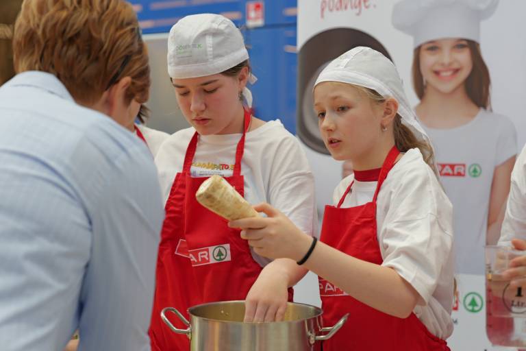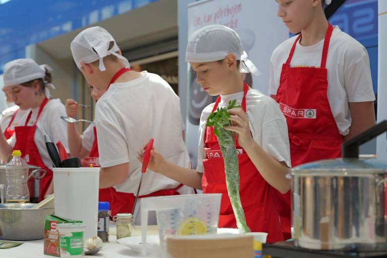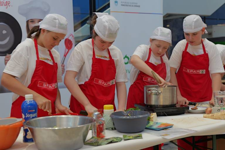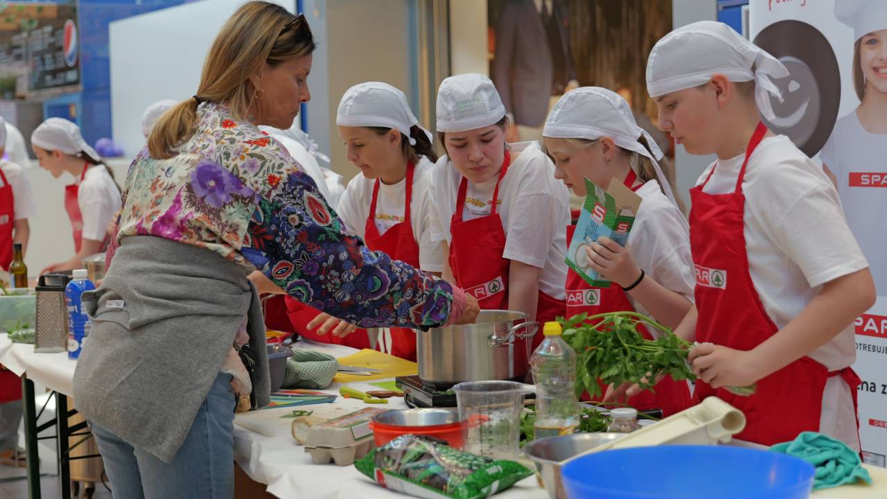 Osnovnošolci danes kuhali tradicionalne jedi pred Intersparom.