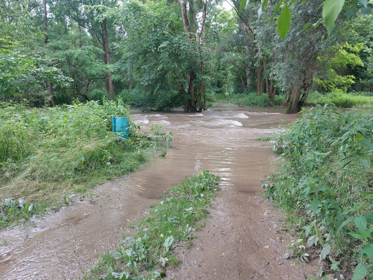 Obilne padavine, ki so minule dni prizadele tudi Pomurje, so botrovale k temu, da je svoje bregove prestopila tudi stranska struga reke Mure v loki Čarna mlaka v Bakovcih.