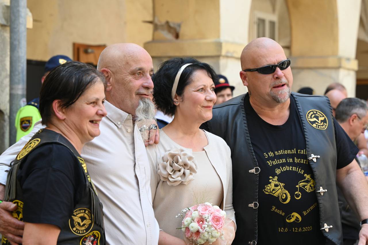 Med usnjenimi jakenami, sončnimi očali, bučnim motorjem in toplimi objemi je poroka postala več kot le dogodek – postala je simbol povezanosti, prijateljstva in iskrenih čustev.