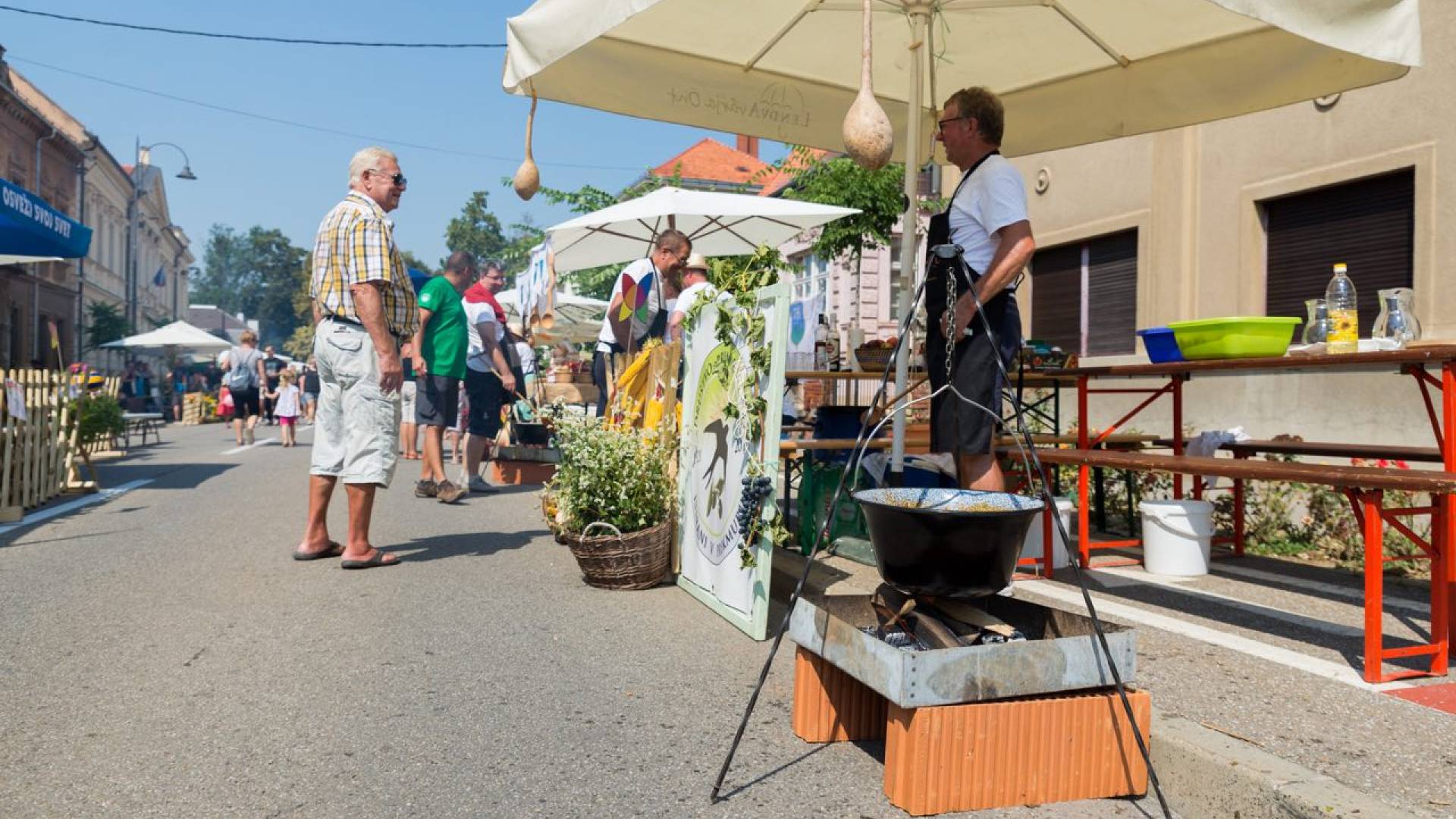 Pred lendavsko Mestno hišo bograč kuhaa tudi zmagovalec oddaje MasterChef Slovenija 2019 Anže Kuplenik v družbi sotekmovalke Špele Golob.