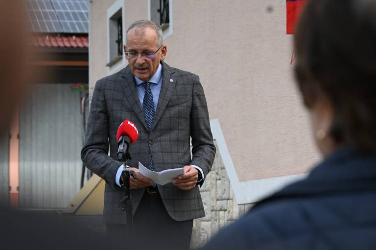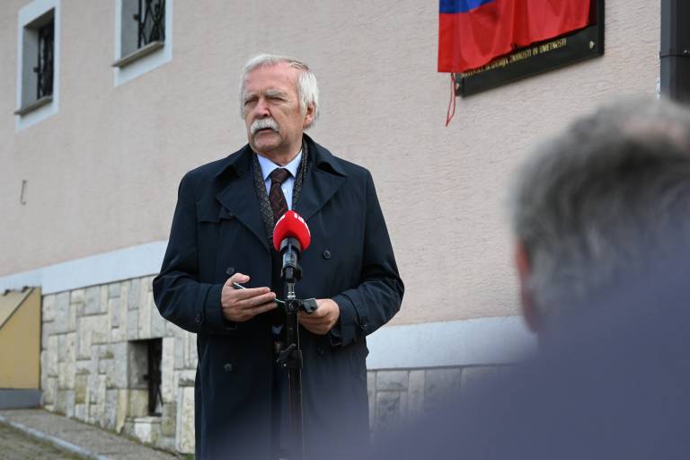 Dejal je, da se z današnjim odkritjem spominske plošče poklanjamo velikemu človeku, »ki je svojo dolgo življenjsko pot, svojo 'veliko belo cesto', začel prav tu, v Dolnjih Slavečih. Bil je človek dialoga, povezovanja, znanja in srca. Njegove korenine so bile prekmurske, a njegova misel svetovna.«