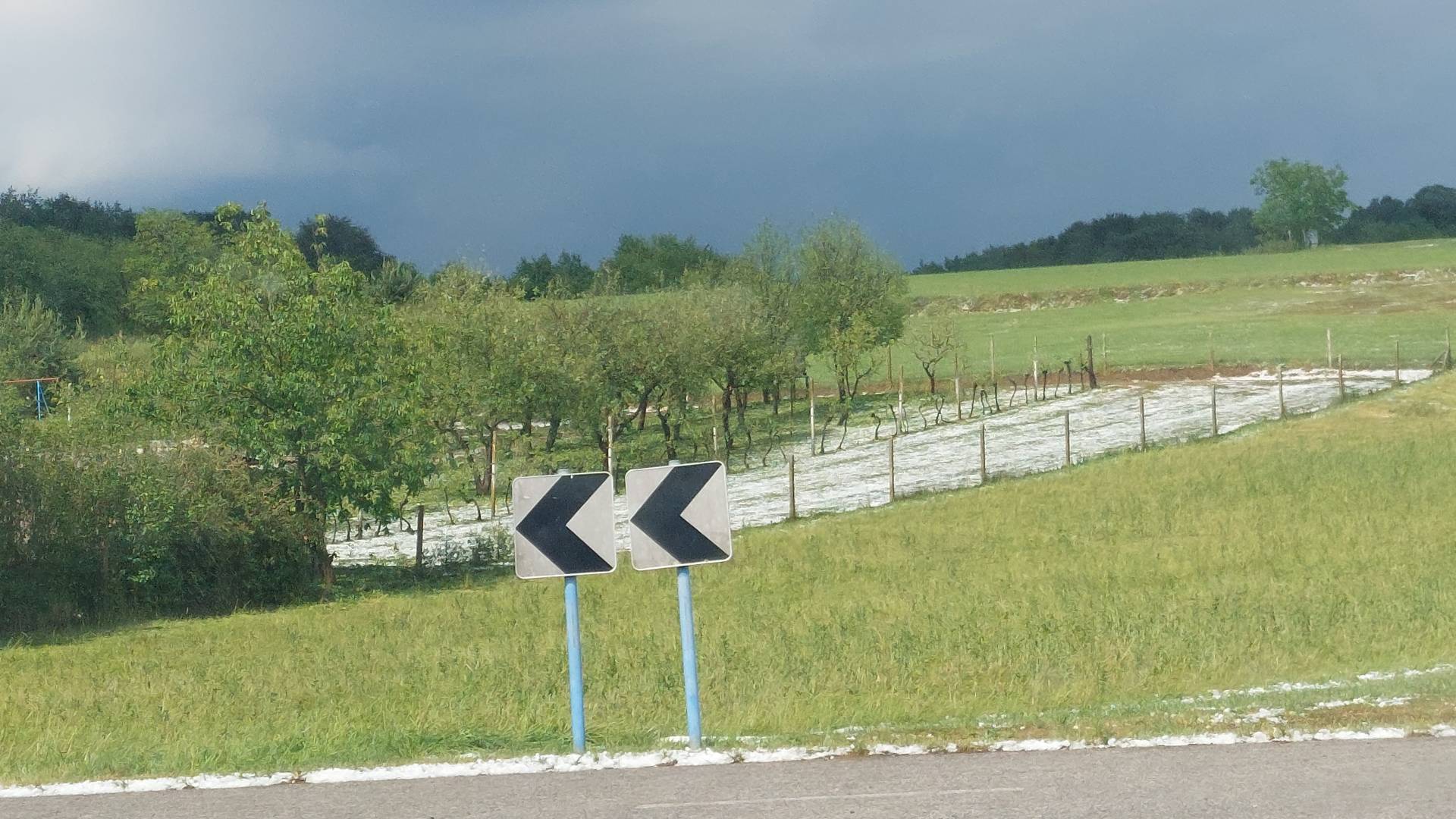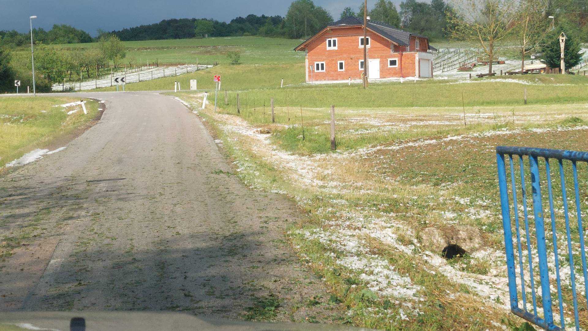 Tik ob meji z Avstrijo je začela padati toča, ki je zajela širše območje Gornjih Petrovcev in Šalovcev.