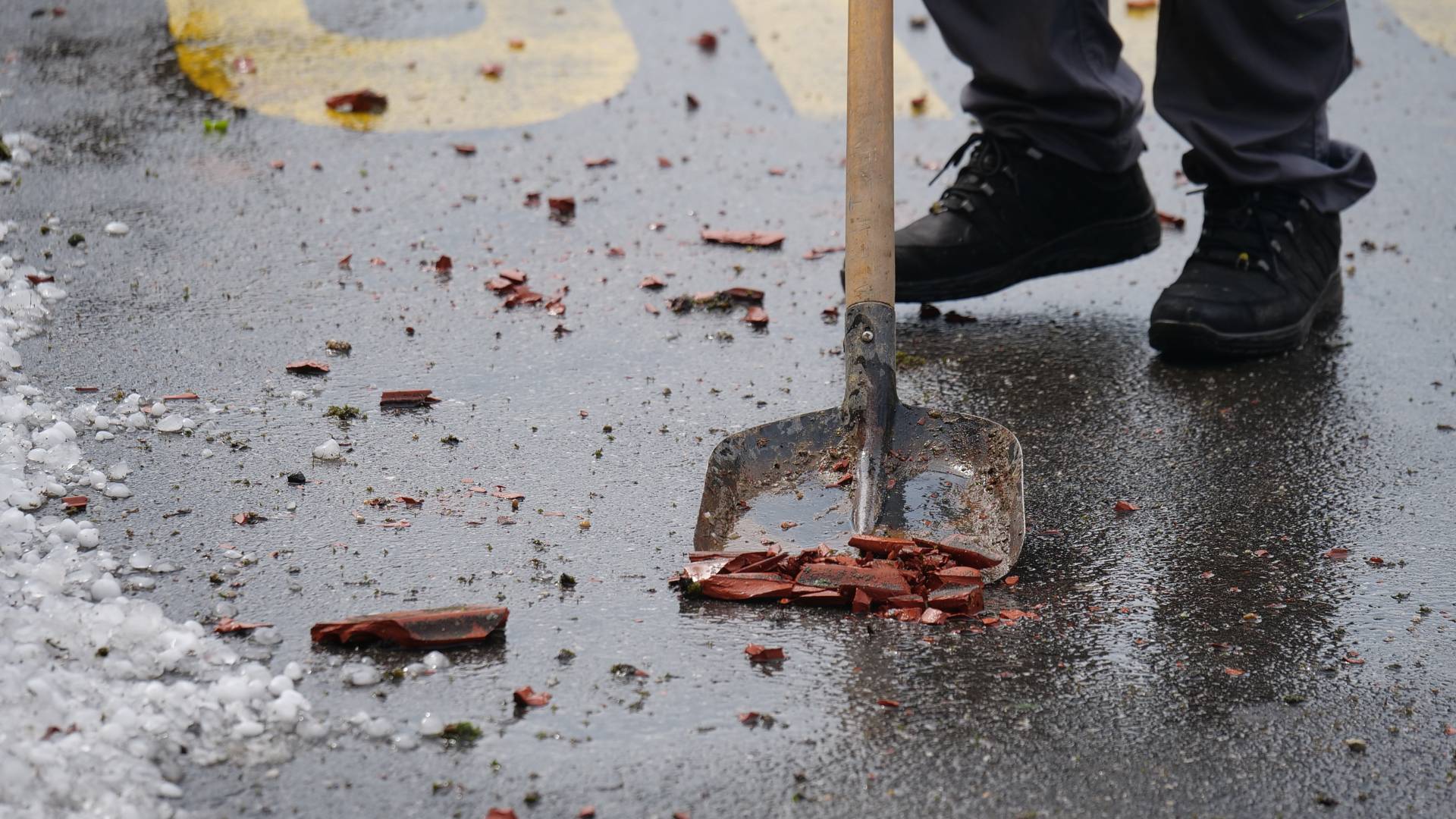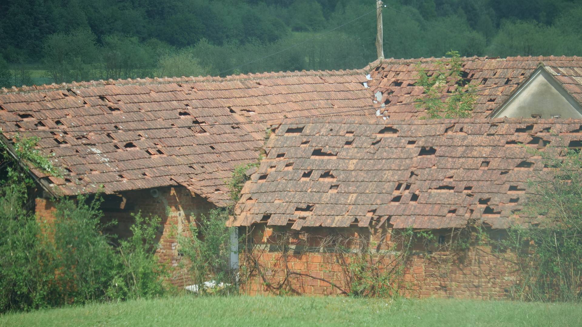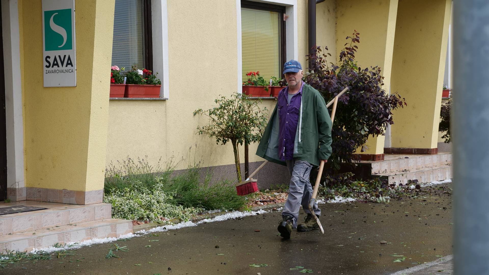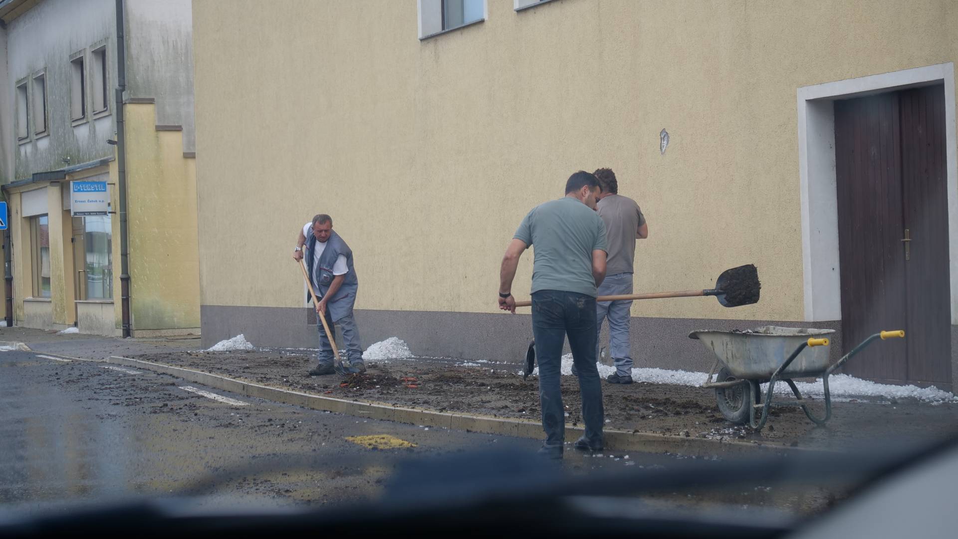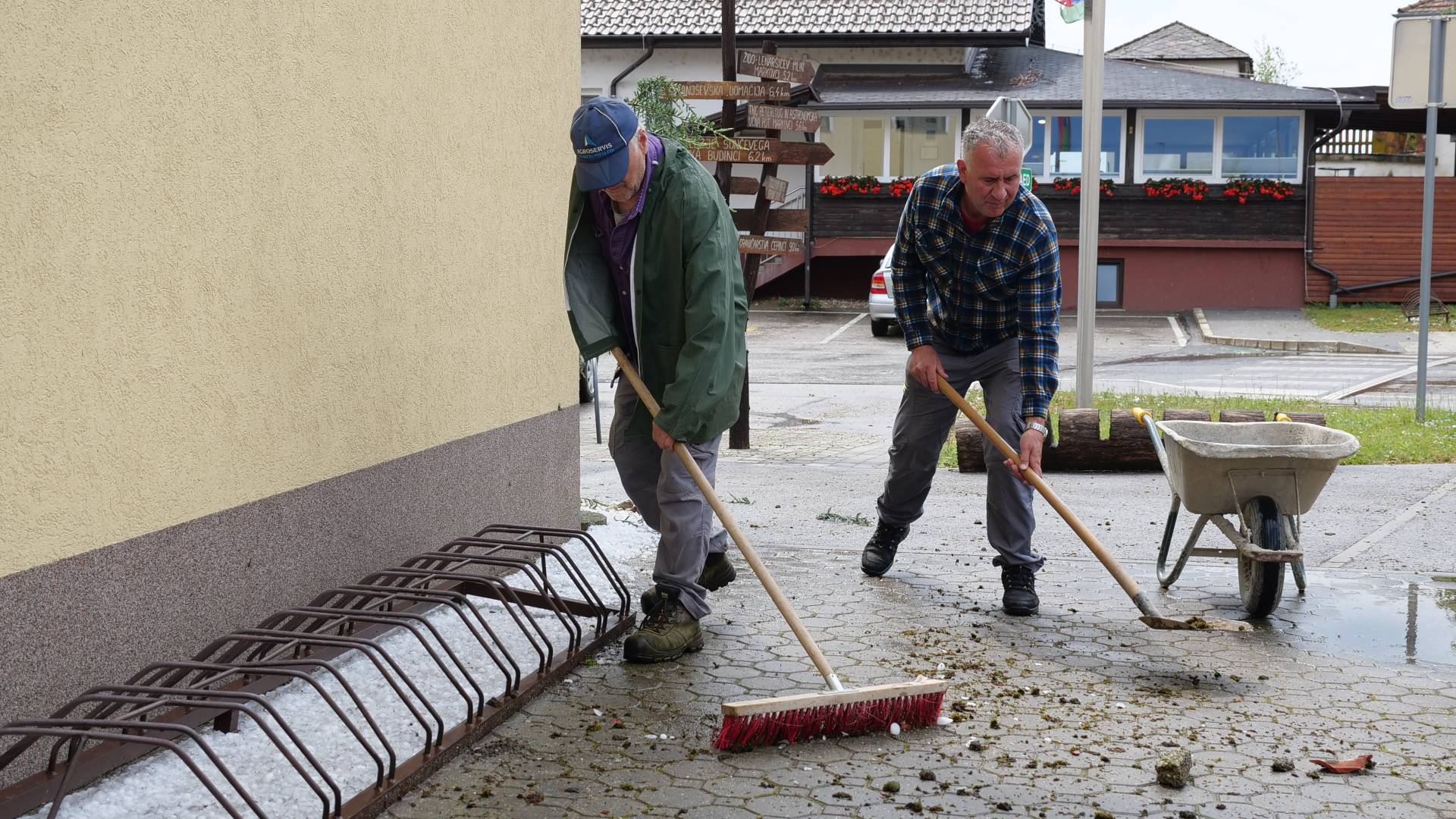 Pri osnovni šoli so po besedah župana vsi avtomobili ostali brez oken, strehe na hišah pa so uničene.