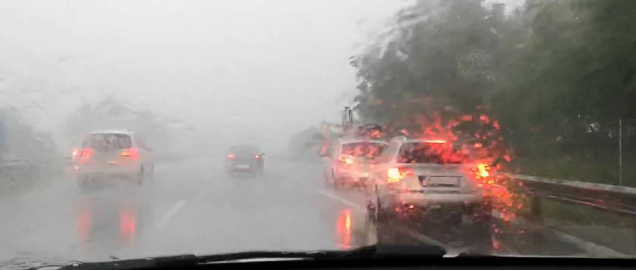 Toča je padala tudi na pomurski avtocesti, kjer so vozniki kljub številnim opozorilom v preteklosti znova zaustavljali ob strani cestišča in pod nadvozom.