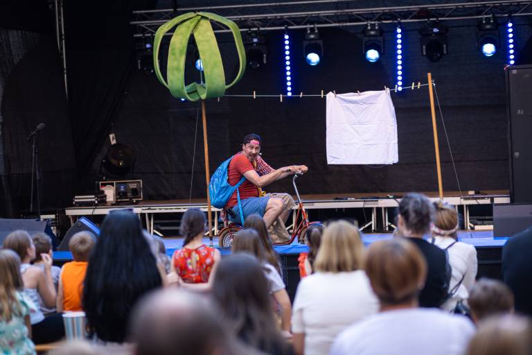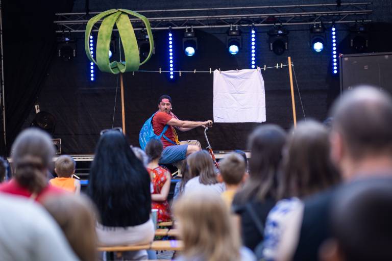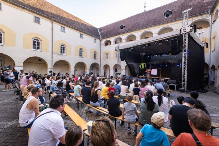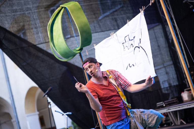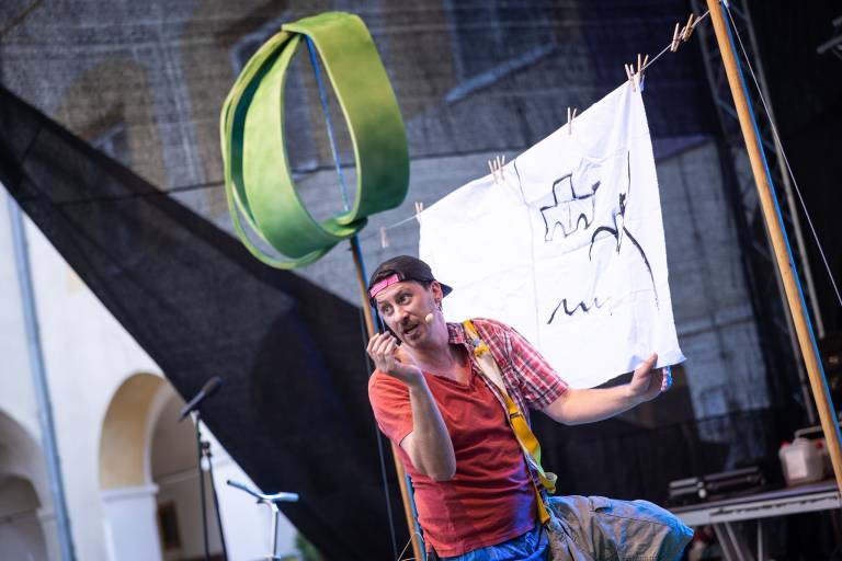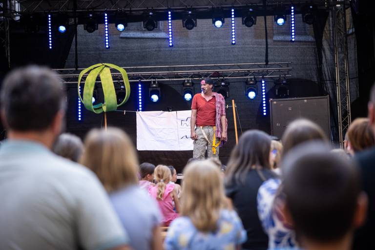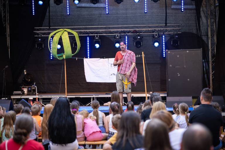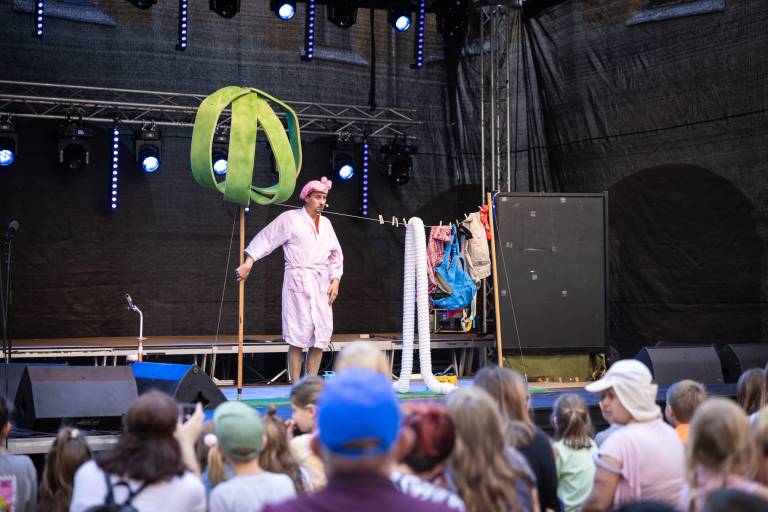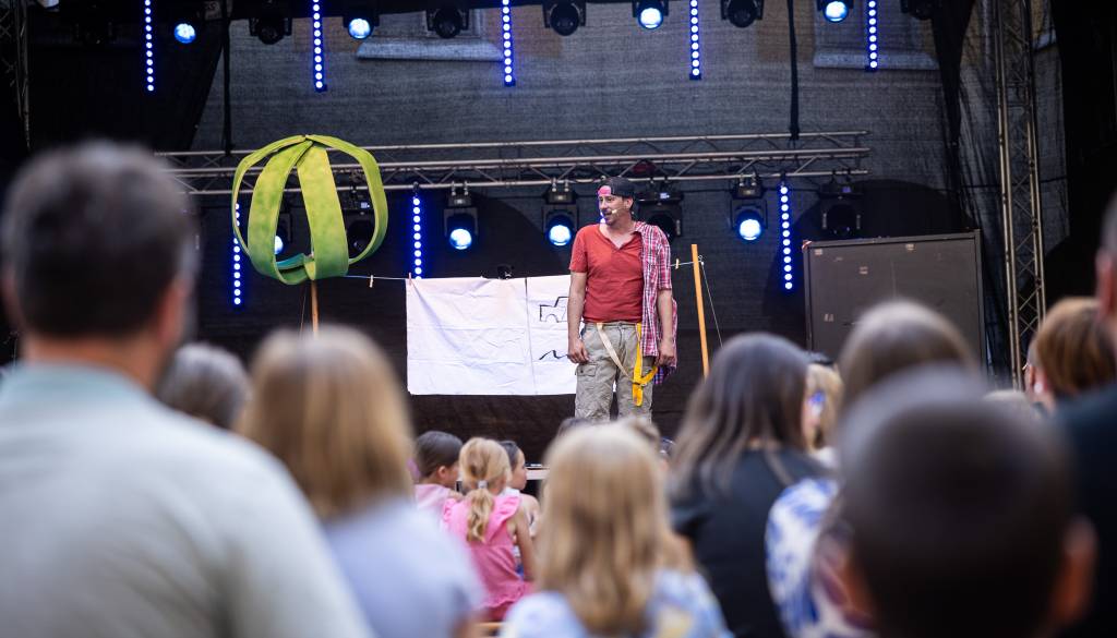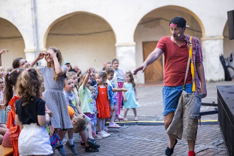 Na grajskem dvorišču v Murski Soboti je danes zaživela odprla prav posebna gledališka predstava za družine. Obiskovalce Festivala Soboški dnevi 2025 je s svojo zgodbo navdušil Tinko Polovinko.