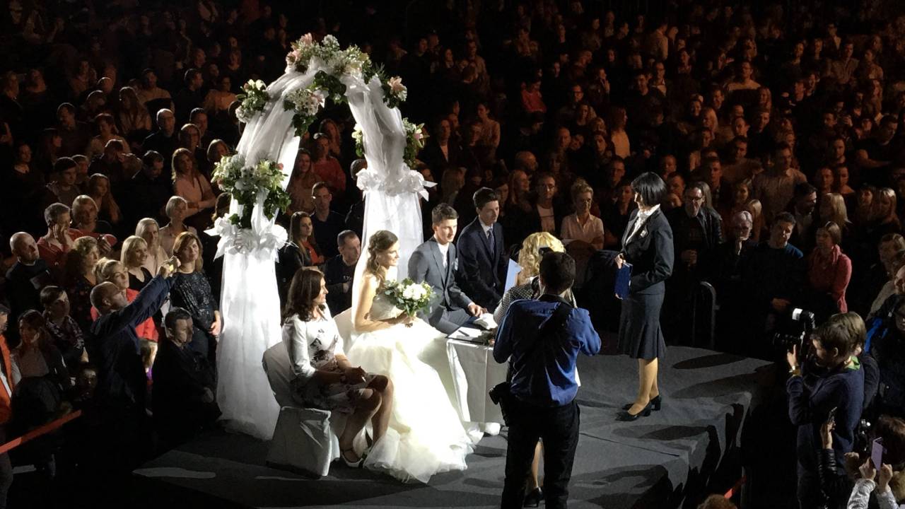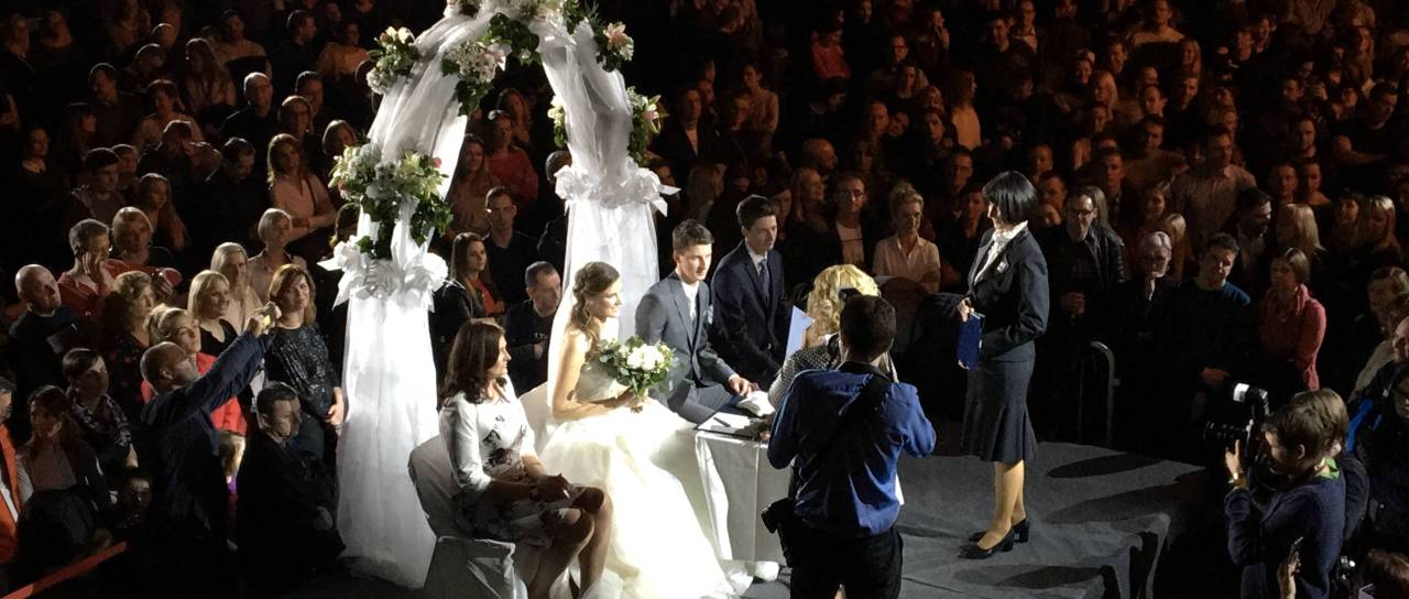 Zgodilo pa se je tudi nekaj čarobnega, kar je Jan Plestenjak že napovedal v našem intervjuju: "Ja, zgodilo se bo nekaj čarobnega. Po mojem se bo prvič v Sloveniji zgodila poroka na koncertu. Izžrebali smo en par, ki se bo poročil pred vsemi, pred 4 000 ljudmi, in mi bomo prvič, z Modrijani, takrat v tistem momentu zapeli "Dal bom besedo" – pesem, ki smo jo zdaj na novo izdali in ki je pravzaprav oda ljubezni in mogoče bo celo postala neke vrste poročna himna".