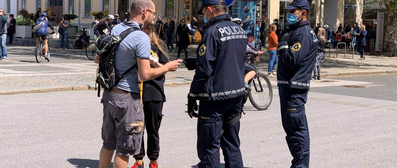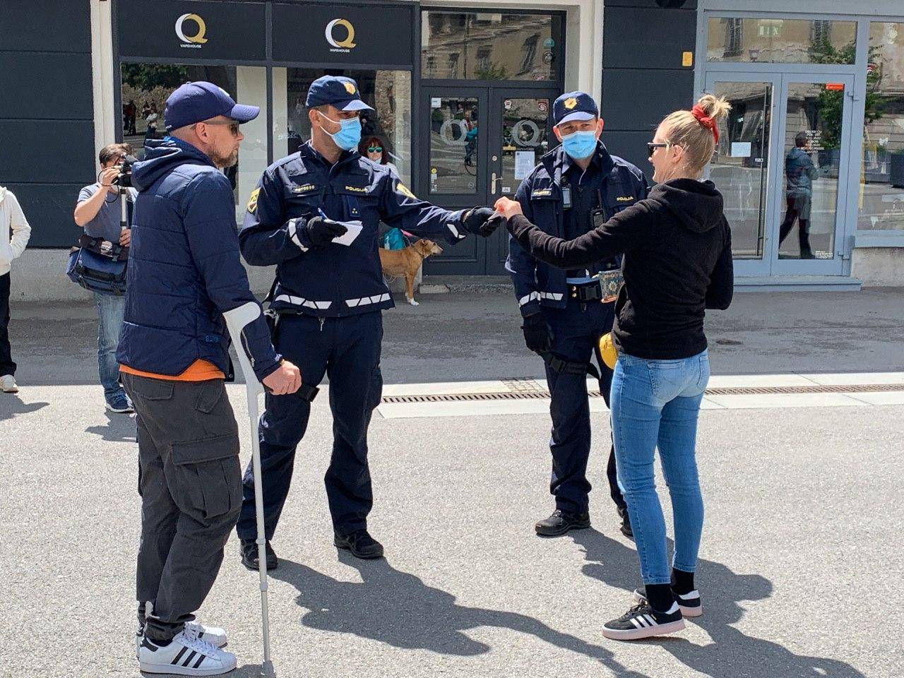 Policisti popisujejo tiste, ki so ob spomeniku kaj odložili. Eden izmed protestnikov je ob spomeniku pustil granitno kocko, druga transparent s pesnitvijo, tretja rdeče nageljne. Vzdušje med protestniki je precej sproščeno, nekateri med popisovanjem jedo sladoled.