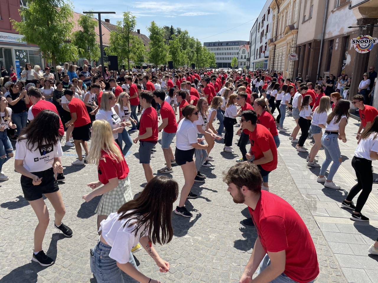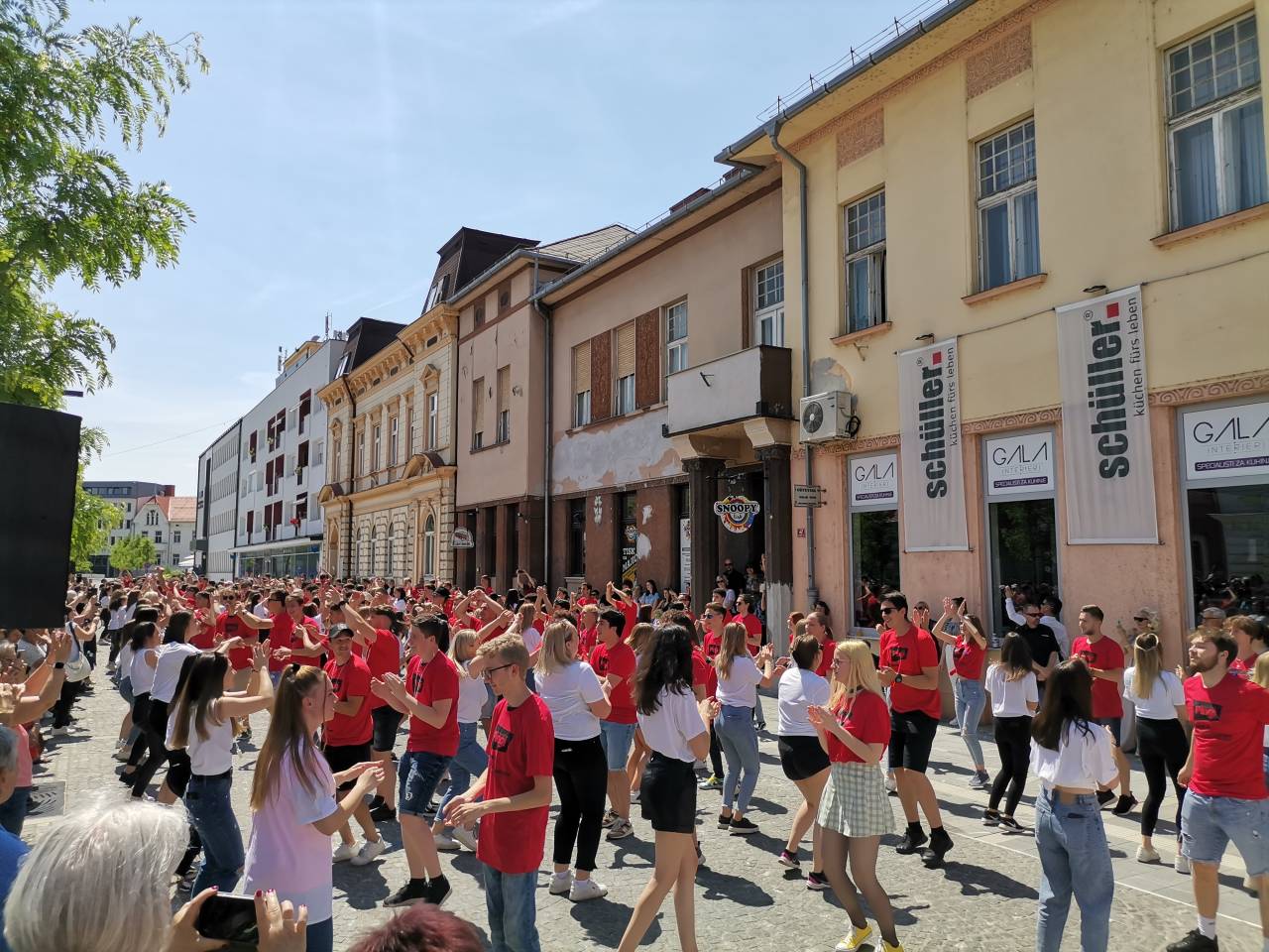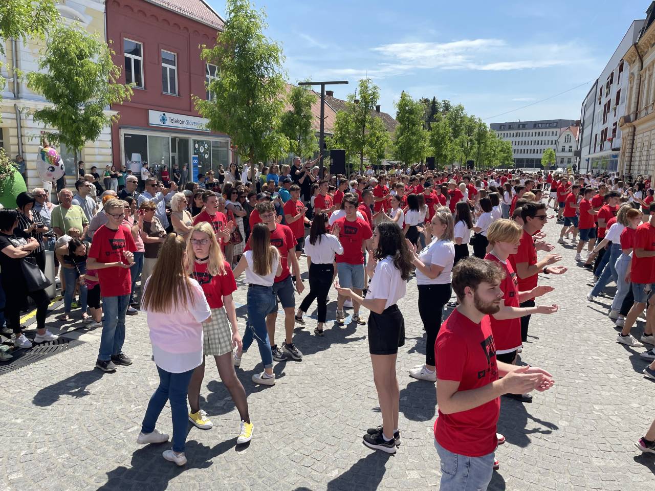 Na Slovenski ulici se je danes vilo plesnih korakov, belo-rdečih majic in dijaškega veselja. Pomurski maturanti so namreč ponovno zaplesali tradicionalno ulično četvorko.