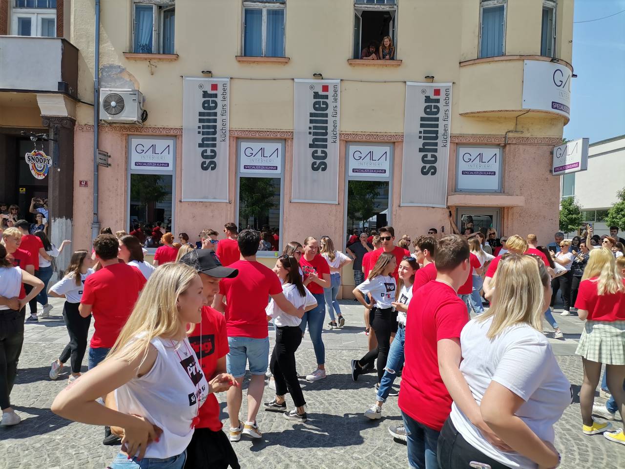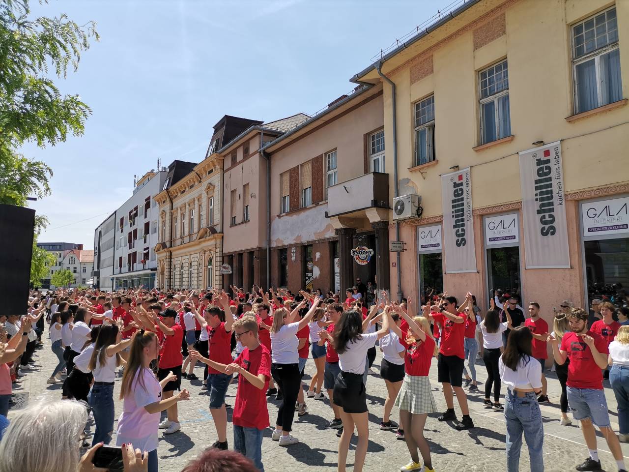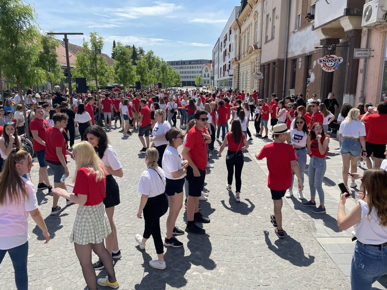 Na Slovenski ulici se je danes vilo plesnih korakov, belo-rdečih majic in dijaškega veselja. Pomurski maturanti so namreč ponovno zaplesali tradicionalno ulično četvorko.