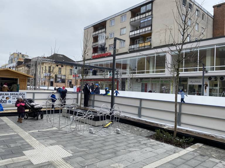 Po več spremembah danes na Slovenski ulici le zaživelo drsališče, ki je že privabilo prve obiskovalce.