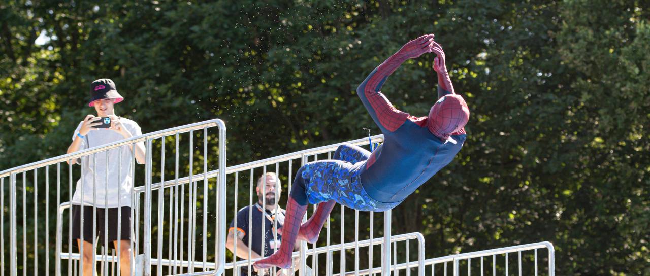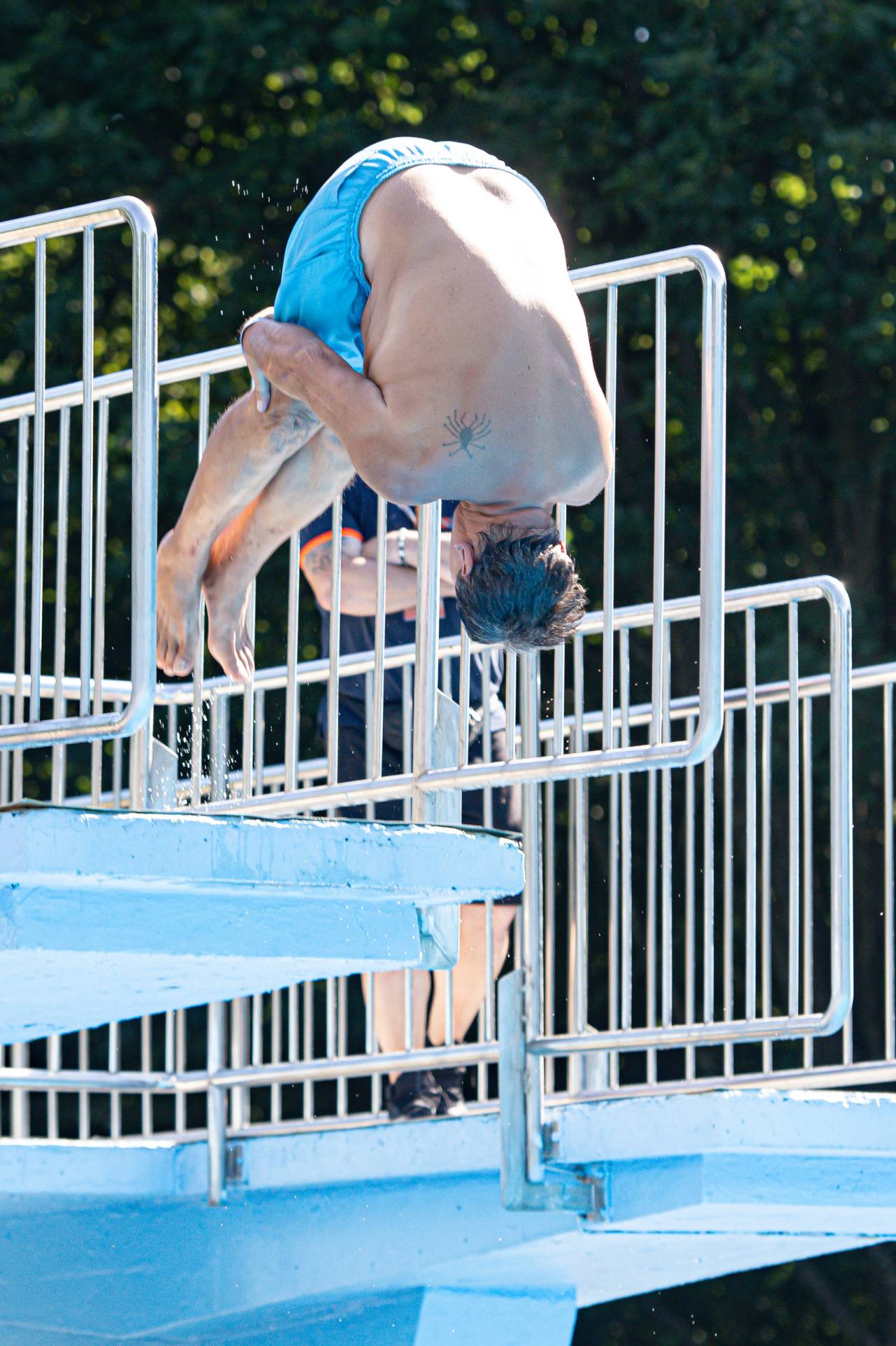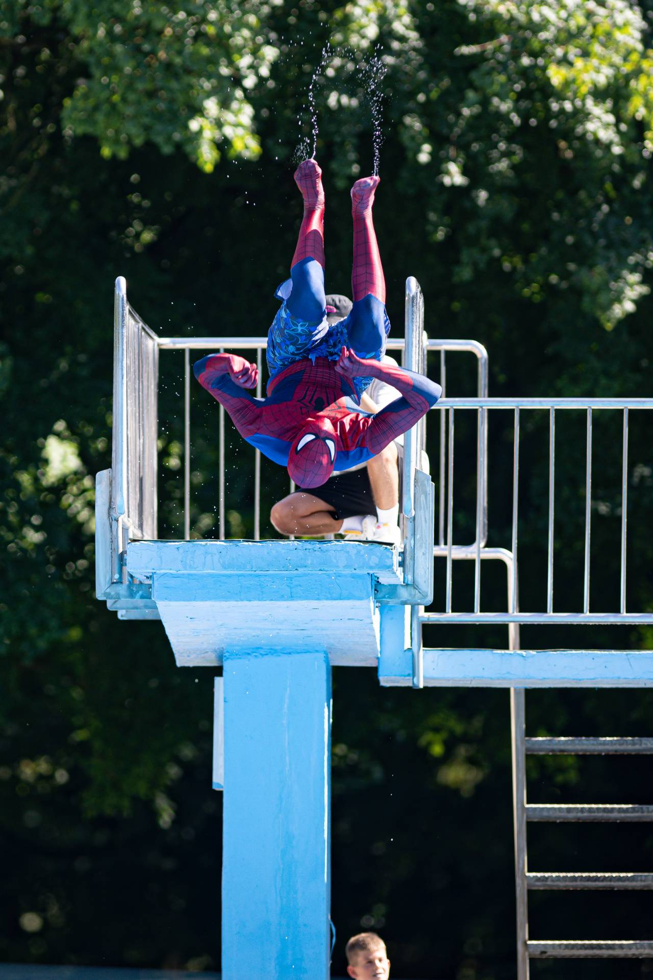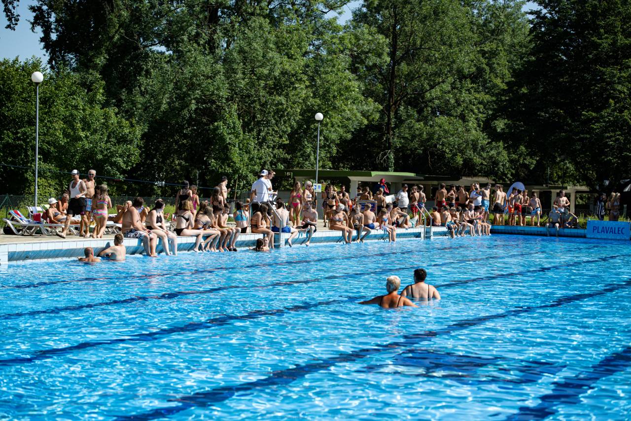 Na Letnem kopališču v Murski Soboti je danes pestro, najprej so se obiskovalci soboškega kopališča preizkusili v skoku v vodo iz stolpa.