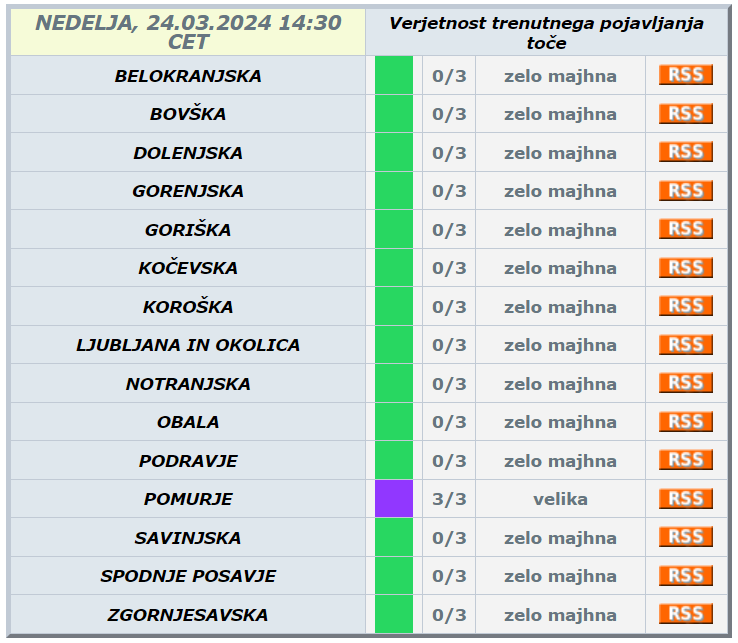 Agencija za okolje je znova izdala vijoličasto opozorilo za nevarnost pojavljanja toče.