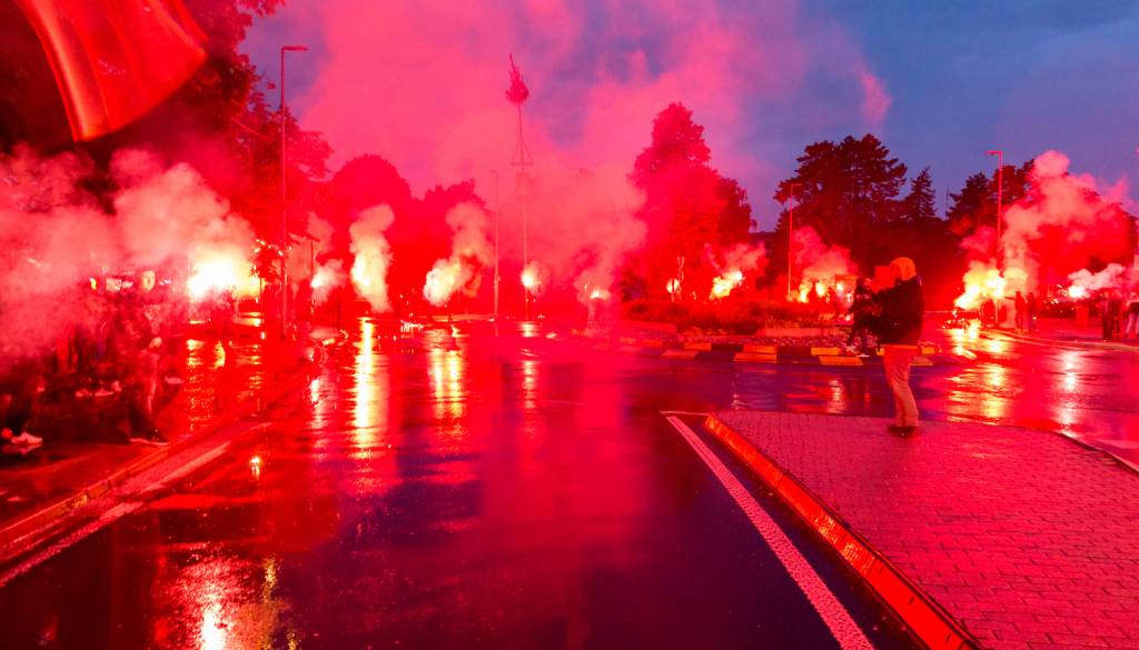 Člani navijaške skupine Black Gringos današnjo stoto obletnico Murske republike obeležujejo na prav poseben način, prižgali so stoto bakel.
