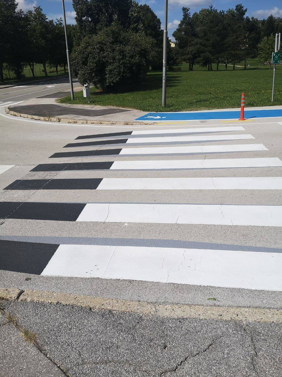 Tako je na Župančičevi ulici pri Osnovni šoli Ljudski vrt narisan nov prehod za pešce, ki ima 3D videz.