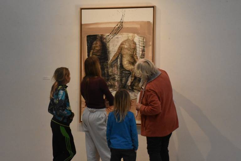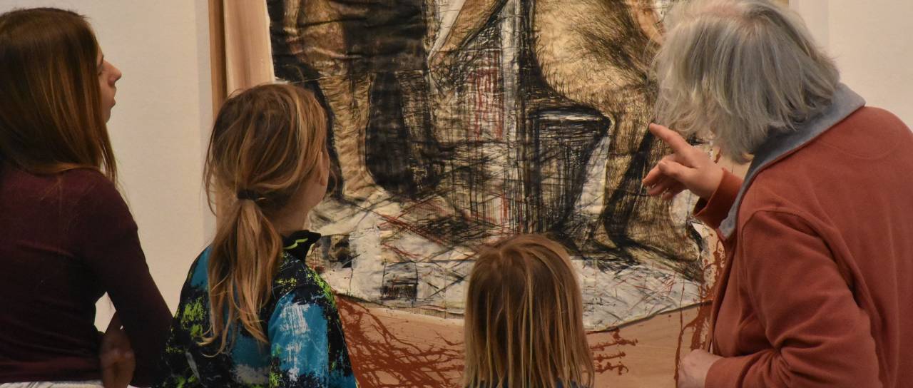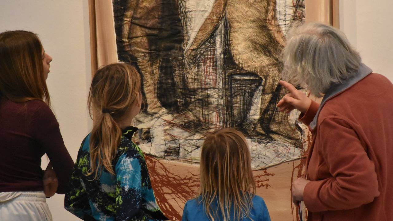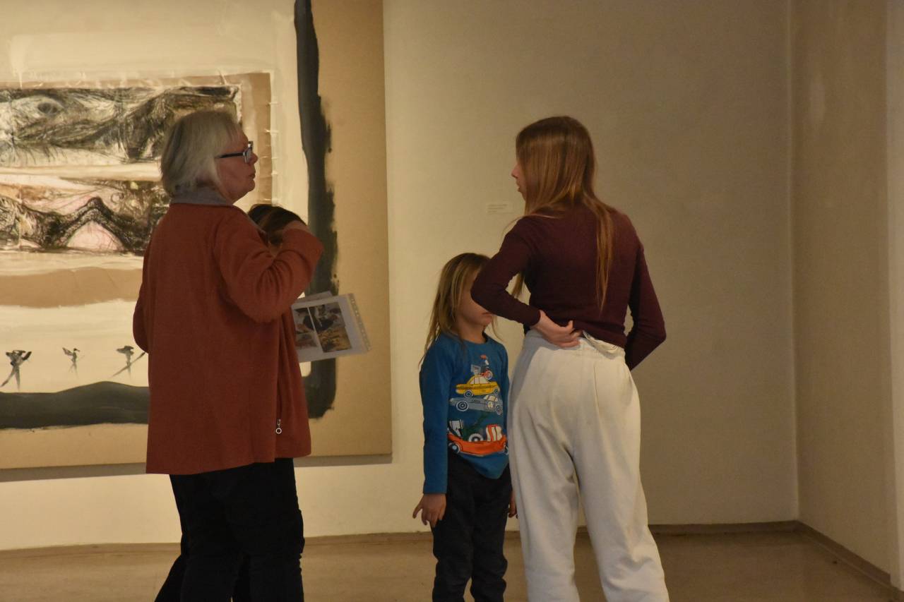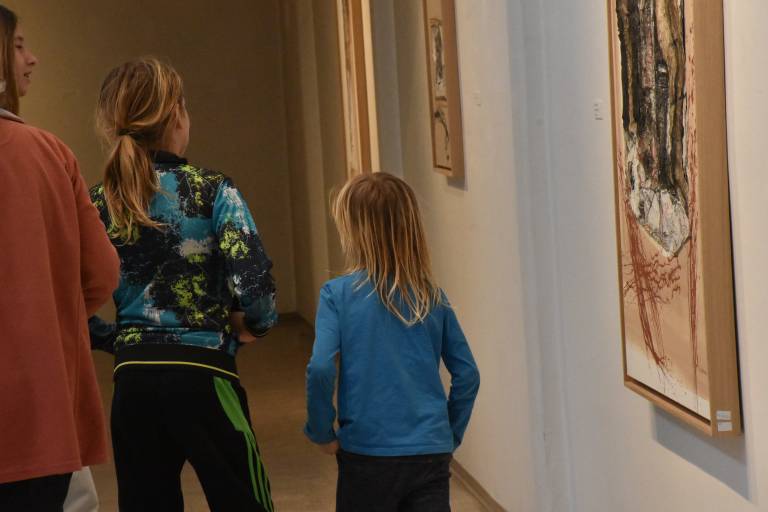 Mladi ustvarjalci so si ogledali razstavljena dela, analizirali tehnike umetnika in se pogovarjali o pomenu barv ter materialov v umetnosti.