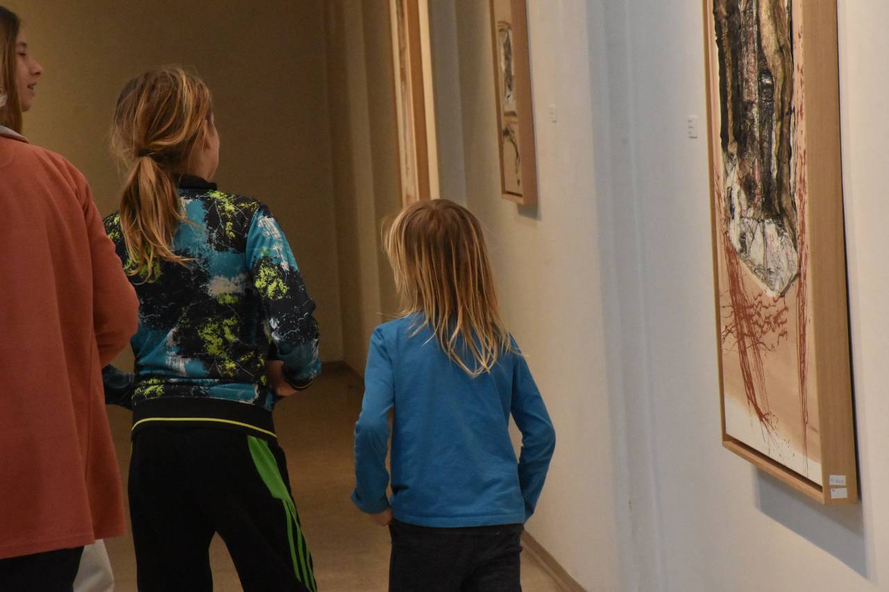 Delavnice so se začele ob 14. uri, ko so otroci najprej obiskali aktualno razstavo Mirsada Begića.